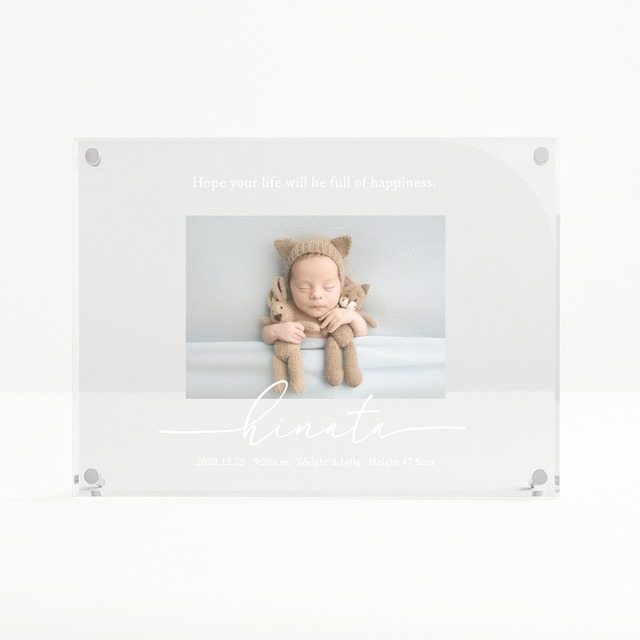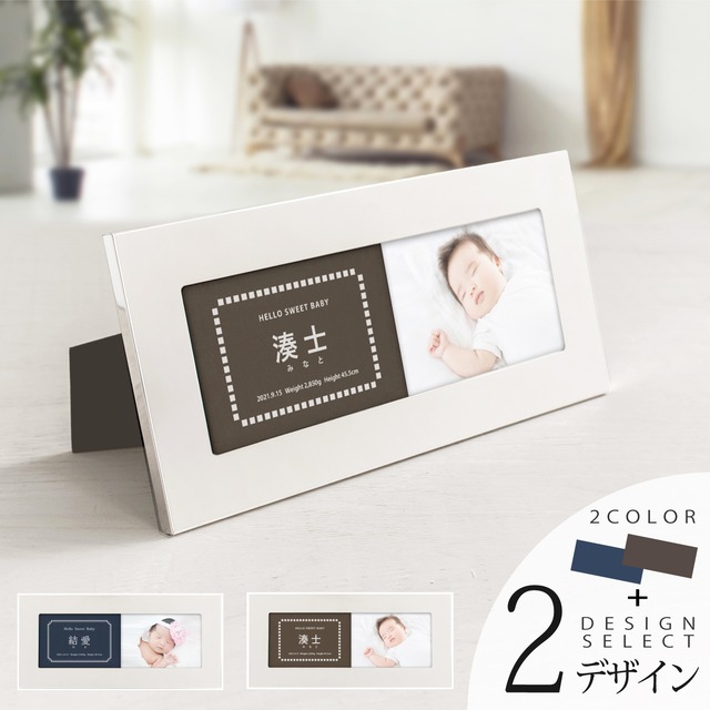 シンプルでありながら高級感溢れるシルバーフレームは、大切な記念やお祝いを彩るのに最適です。お子さまのお名前入りという特別なフレームは、ギフトとしても大変人気です。データを入力するだけで簡単にオーダーできます。