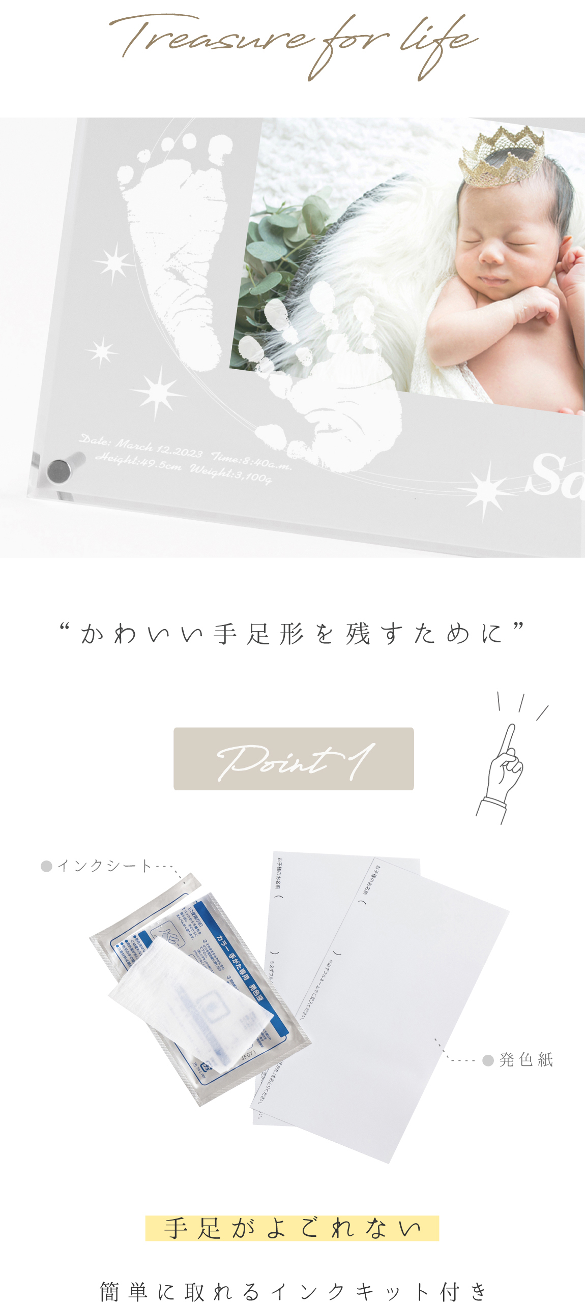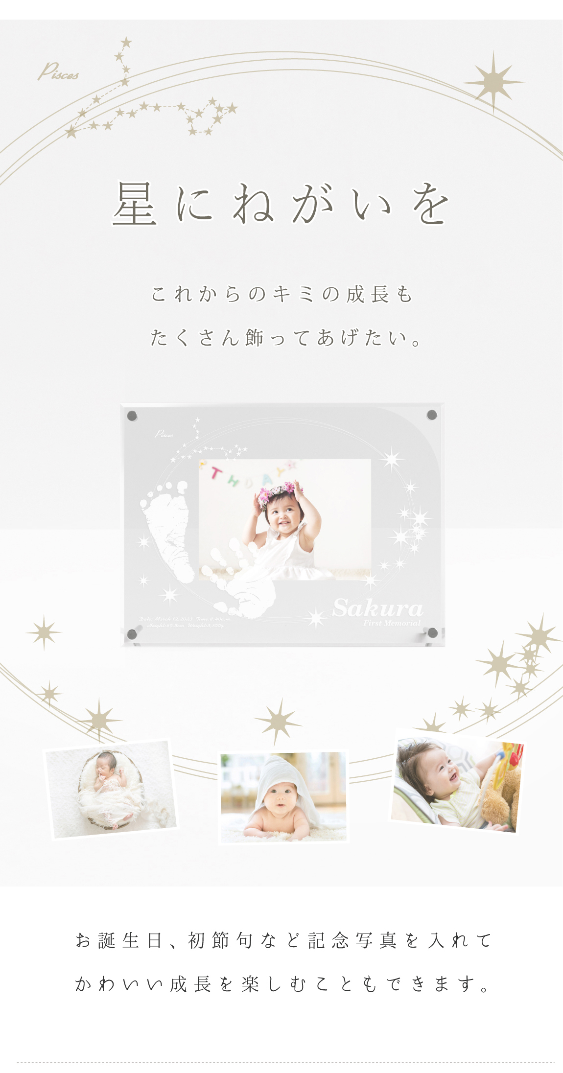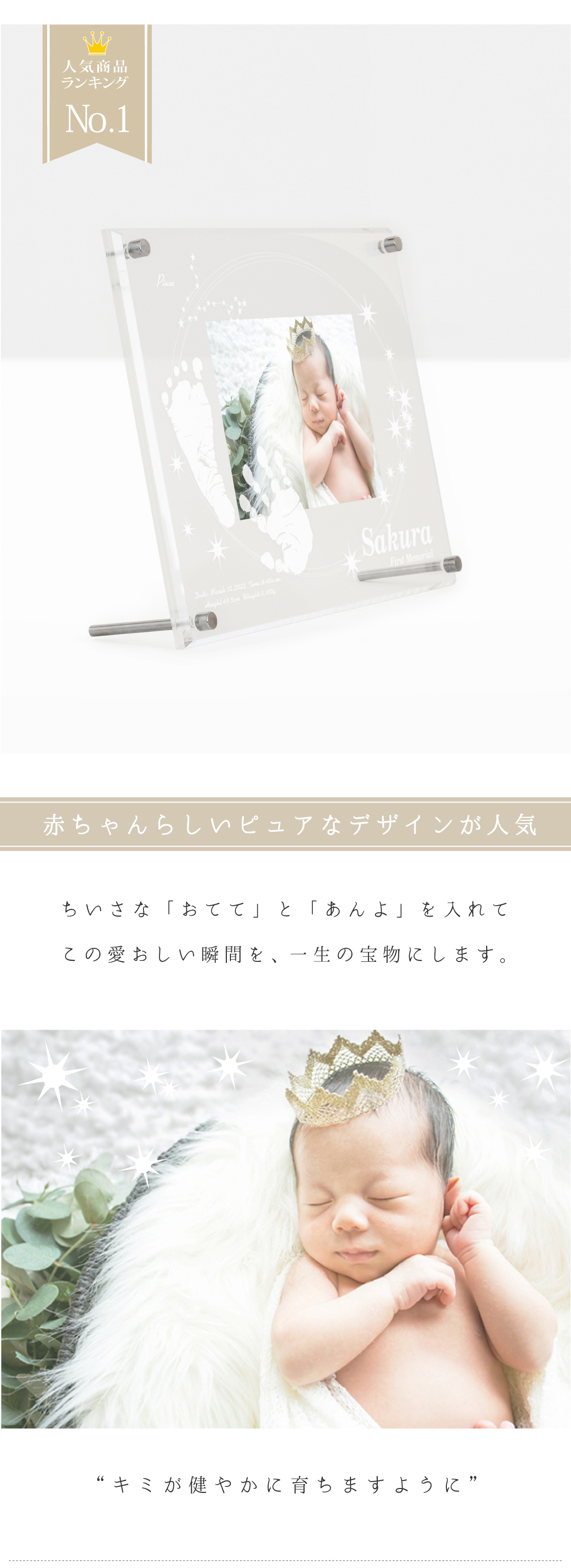 ちいさな「おてて」と「あんよ」を入れて、愛おしい瞬間を一生の宝物に。シンプルで心温まるデザインは、年齢・性別を問わず多くの方に愛されます。