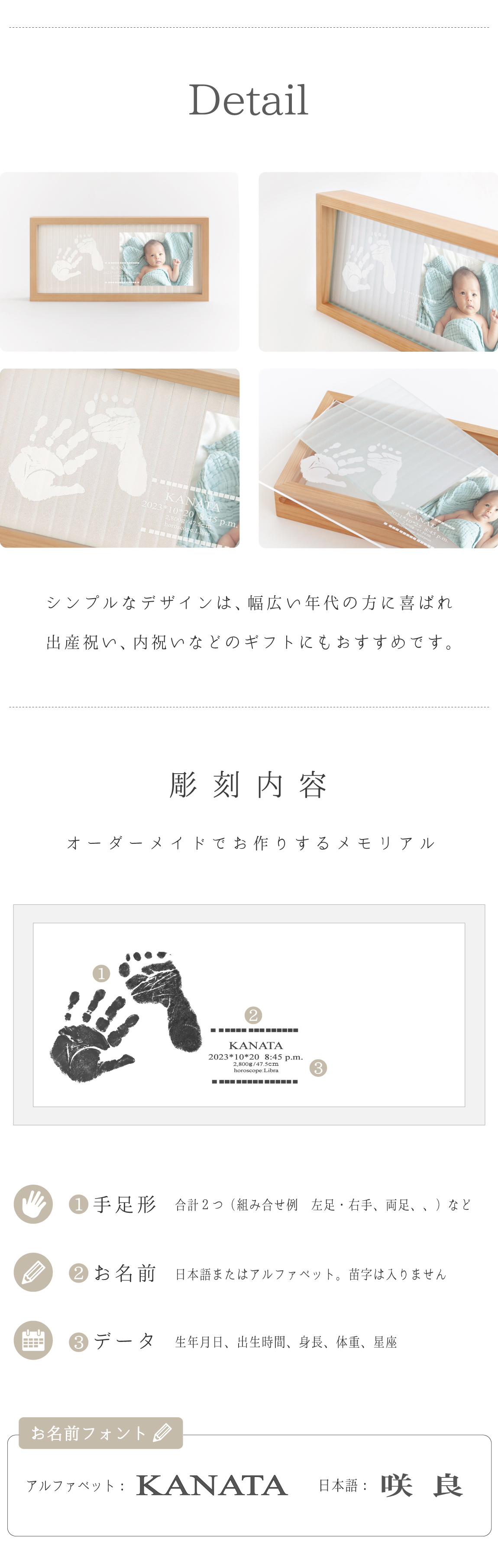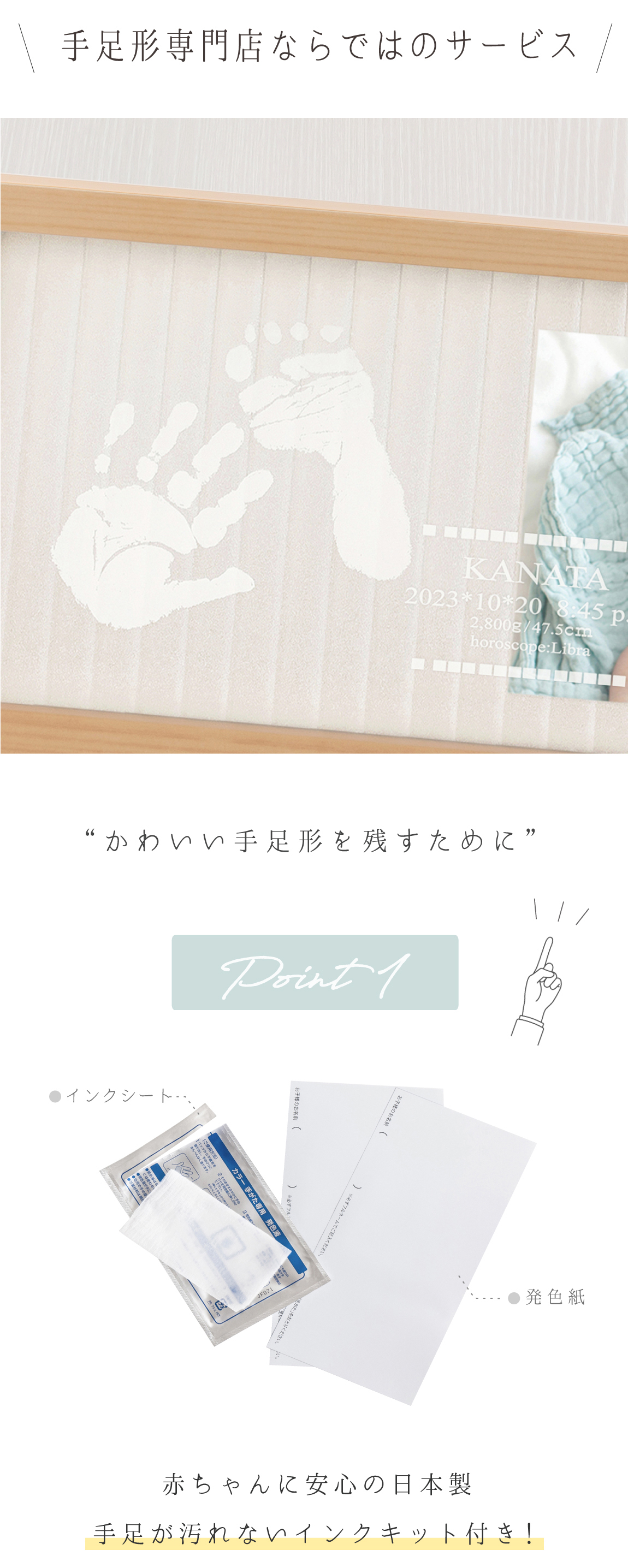 両手足形のうちいずれか2つ/お名前/お誕生日/出生時刻/身長/体重/星座