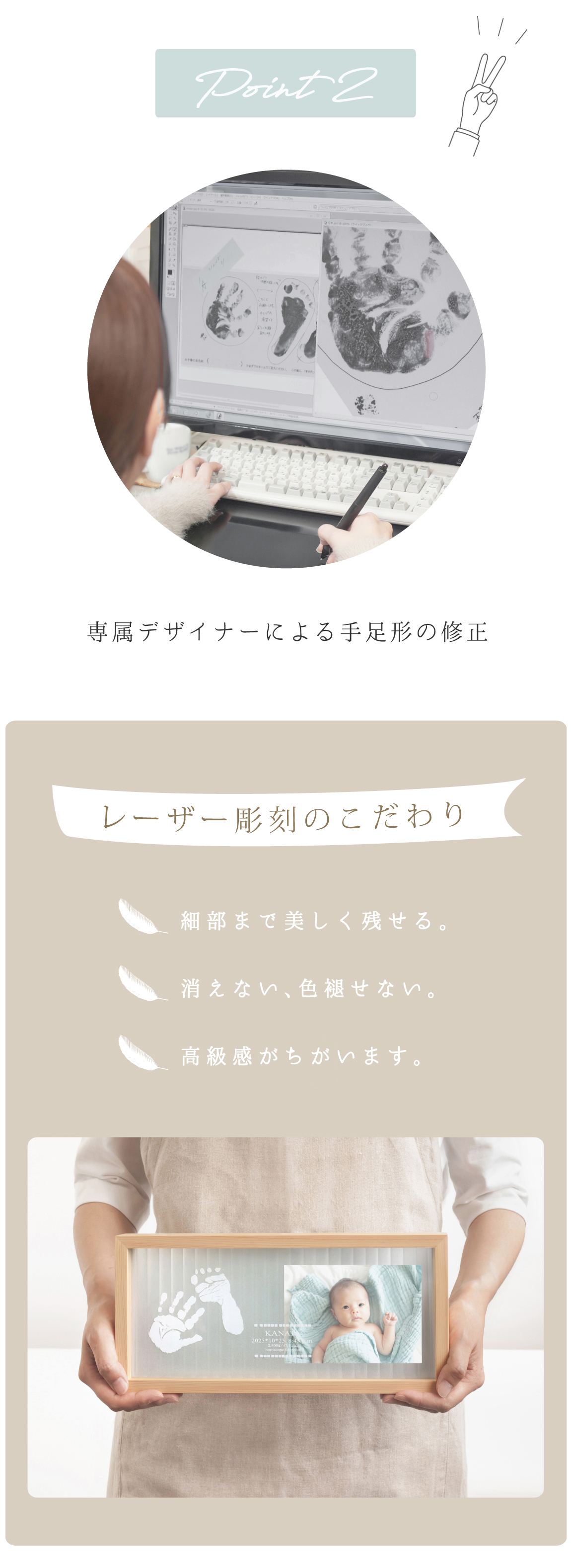 縦:約11cm×横:約11cmの枠に収まる手足形であれば、彫刻することができます。この範囲よりも大きな手足形の場合、デザインが変わる可能性があります。