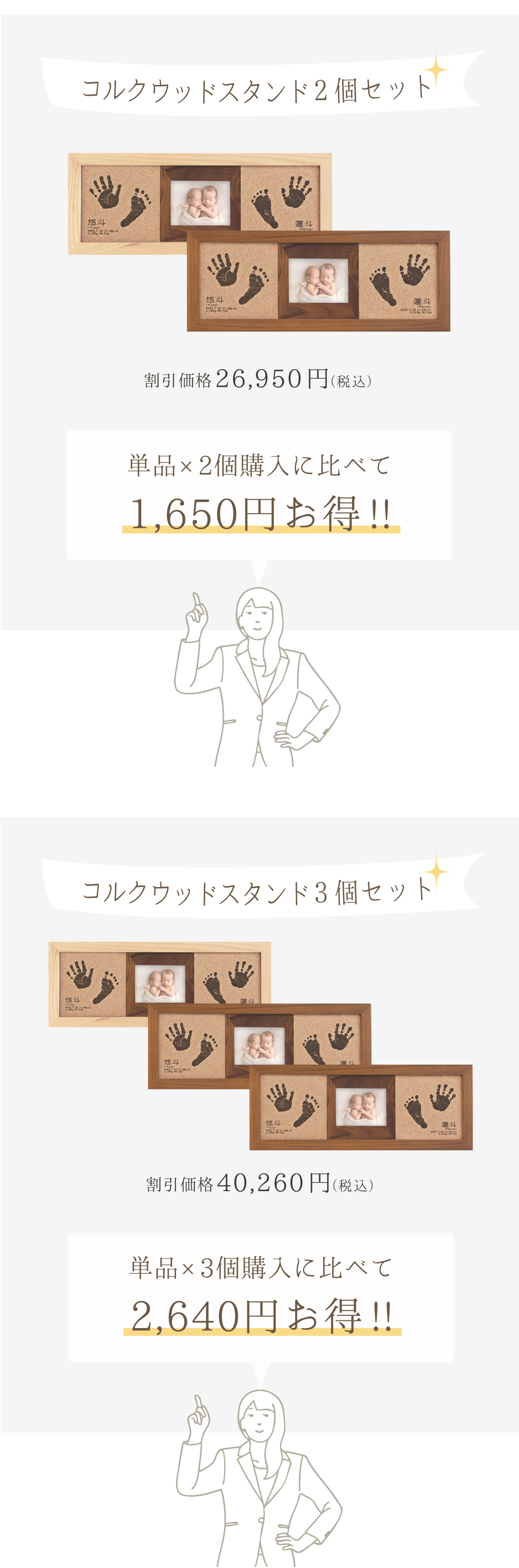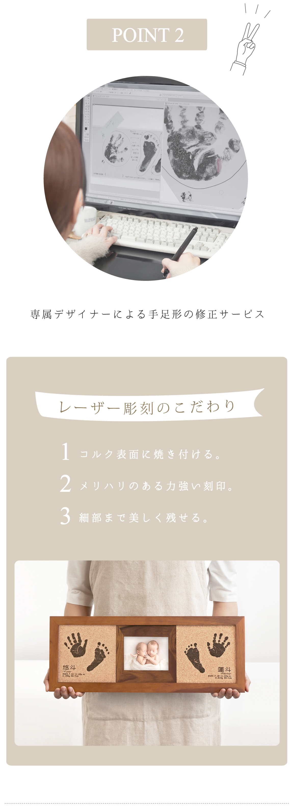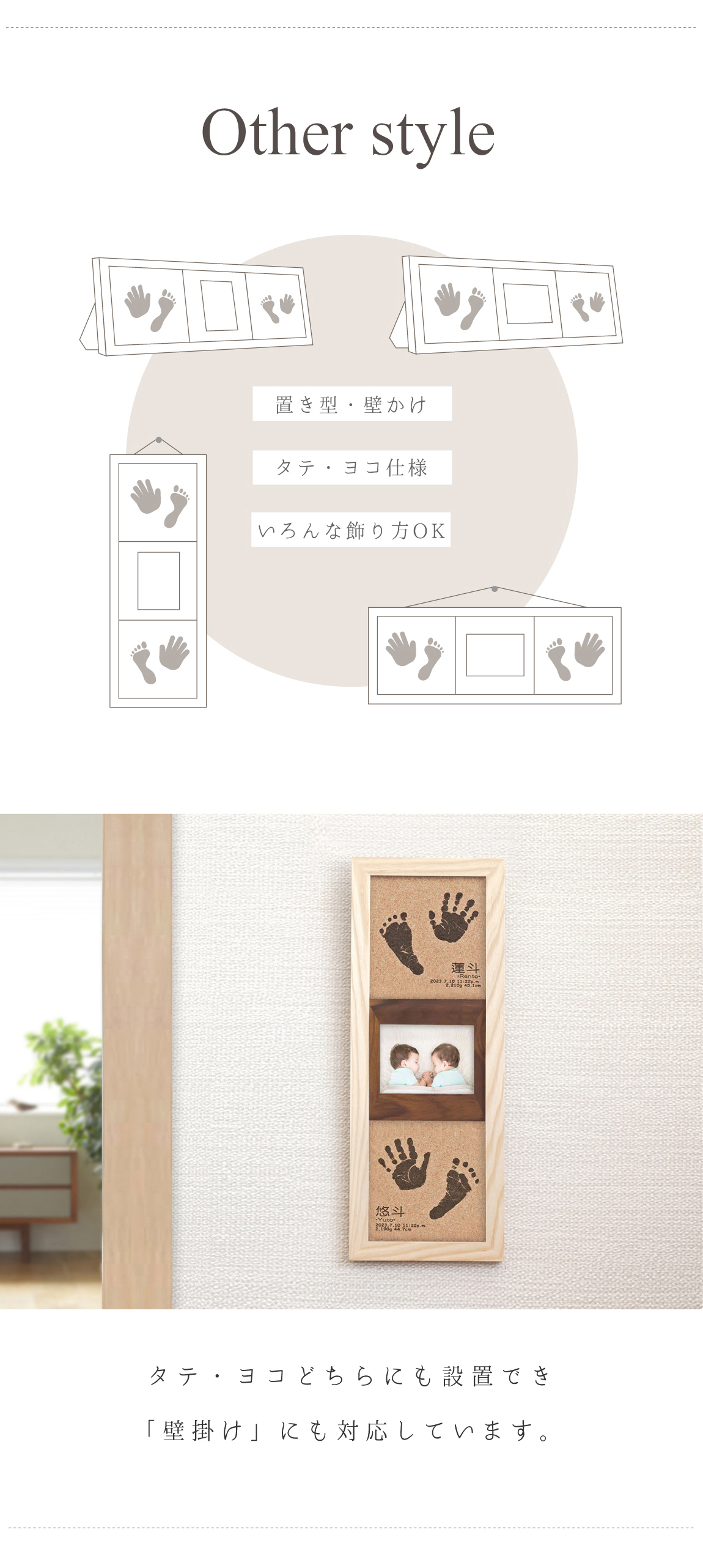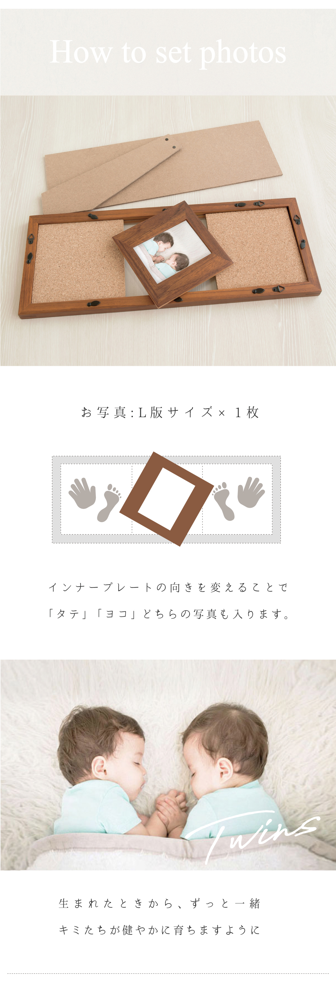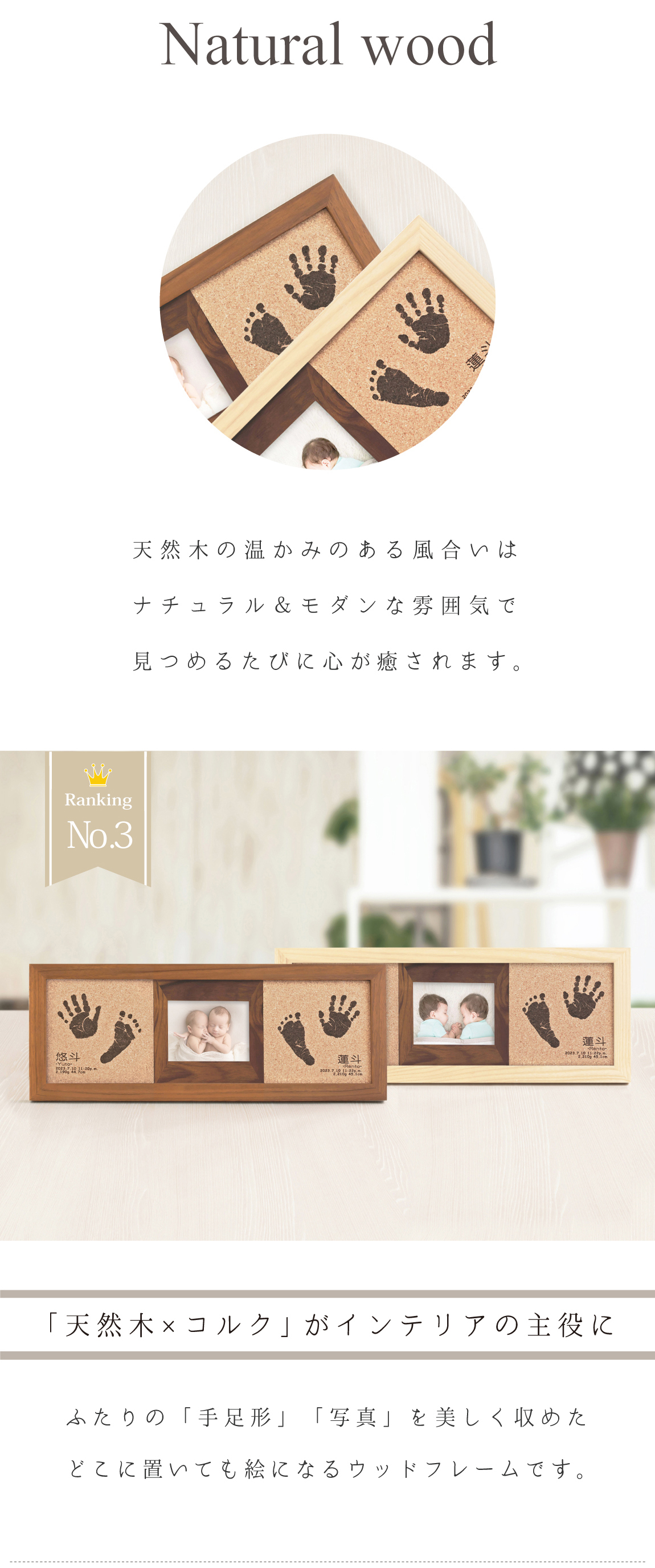 「天然木×コルク」の自然素材を組み合わせたデザインは、当店の人気定番シリーズ。双子ちゃんの思い出を、仲良くひとつにまとめた、特別なメモリアルフレームです。おふたりの可愛い笑顔を入れて、これからの健やかな成長を見守ってください。