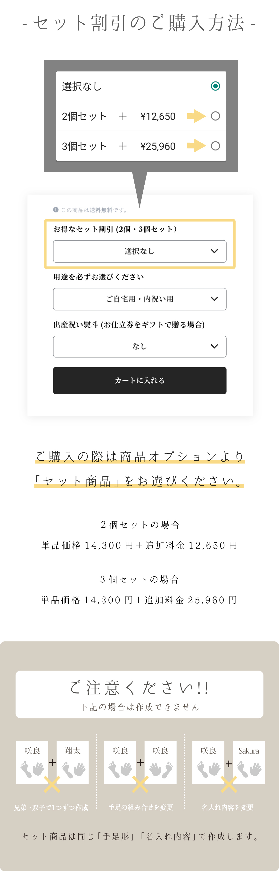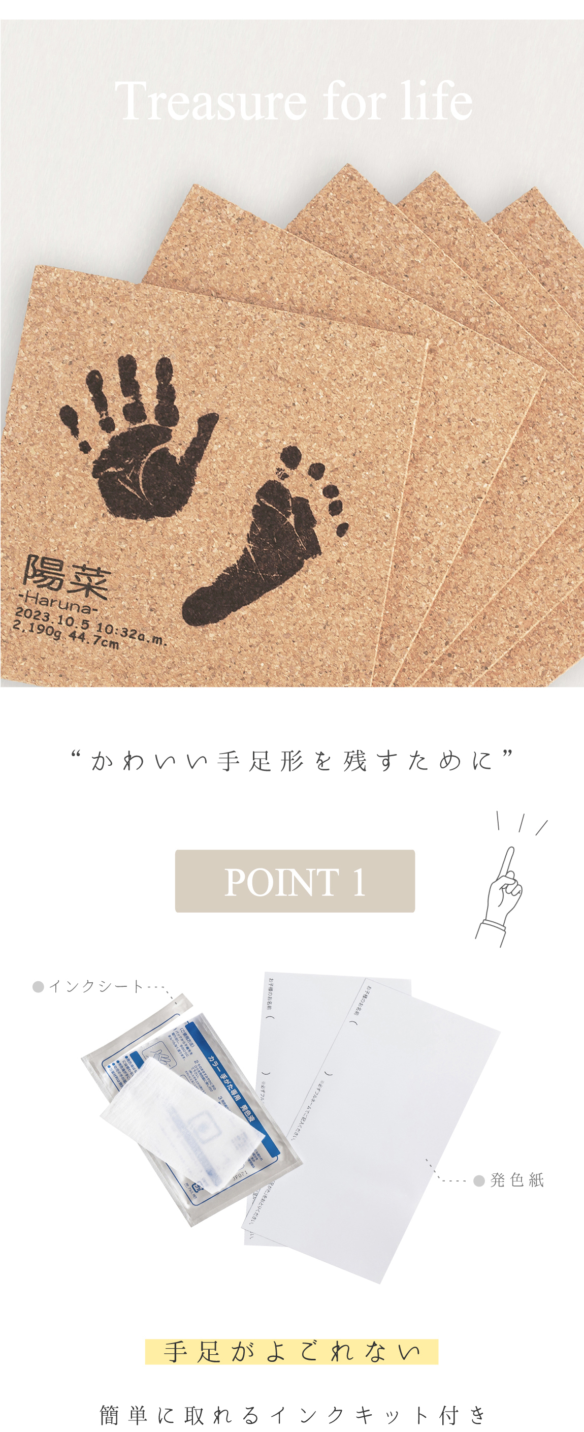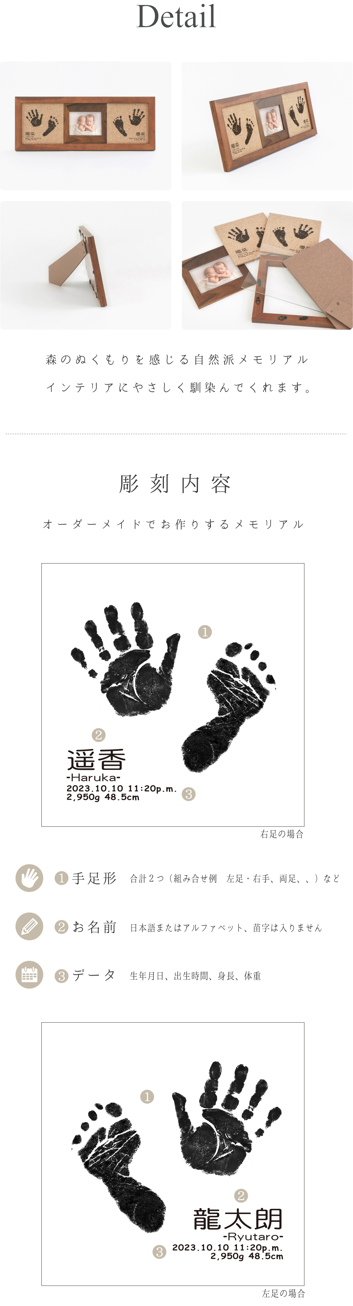 両手足形のうちいずれか2つ/お名前/お誕生日/出生時刻/身長/体重