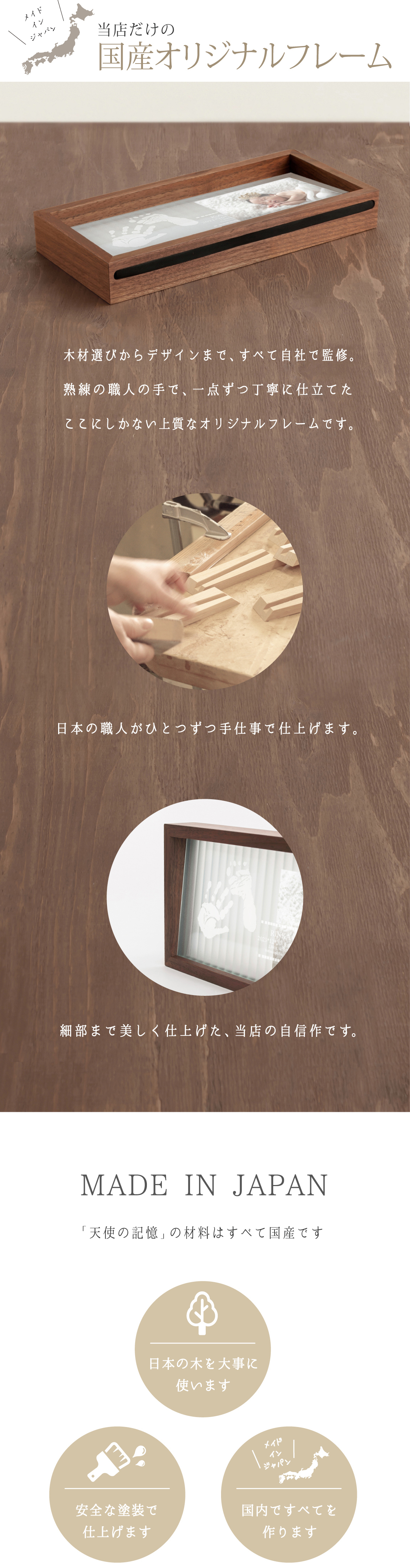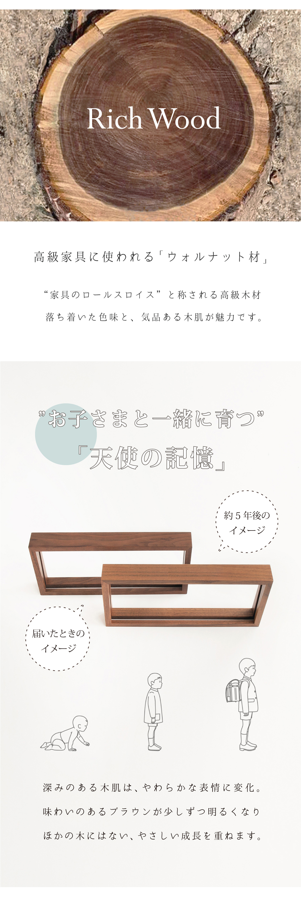 世界三大銘木のウォルナットで仕立てた「天使の記憶」。ほかの木材にはない独特な高級感があり、上質なインテリアにもよく馴染みます。日本の家具職人が「一生の宝物」になるように、心をこめてお作りします。