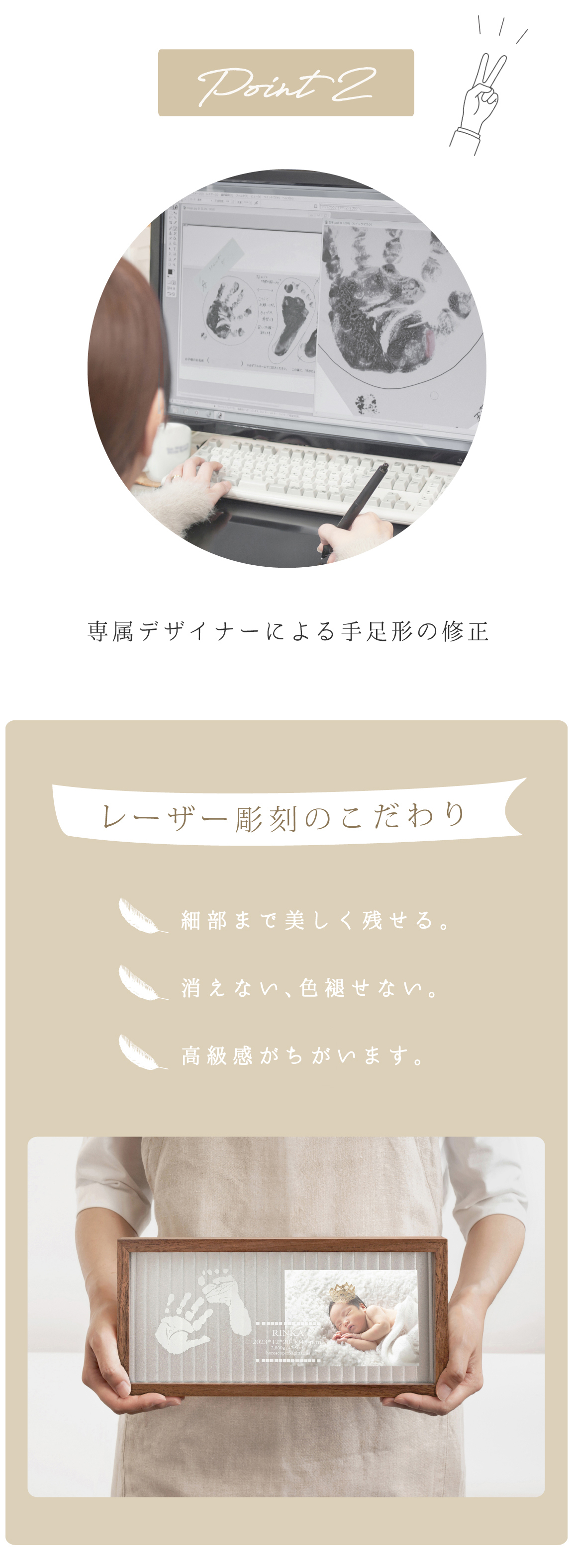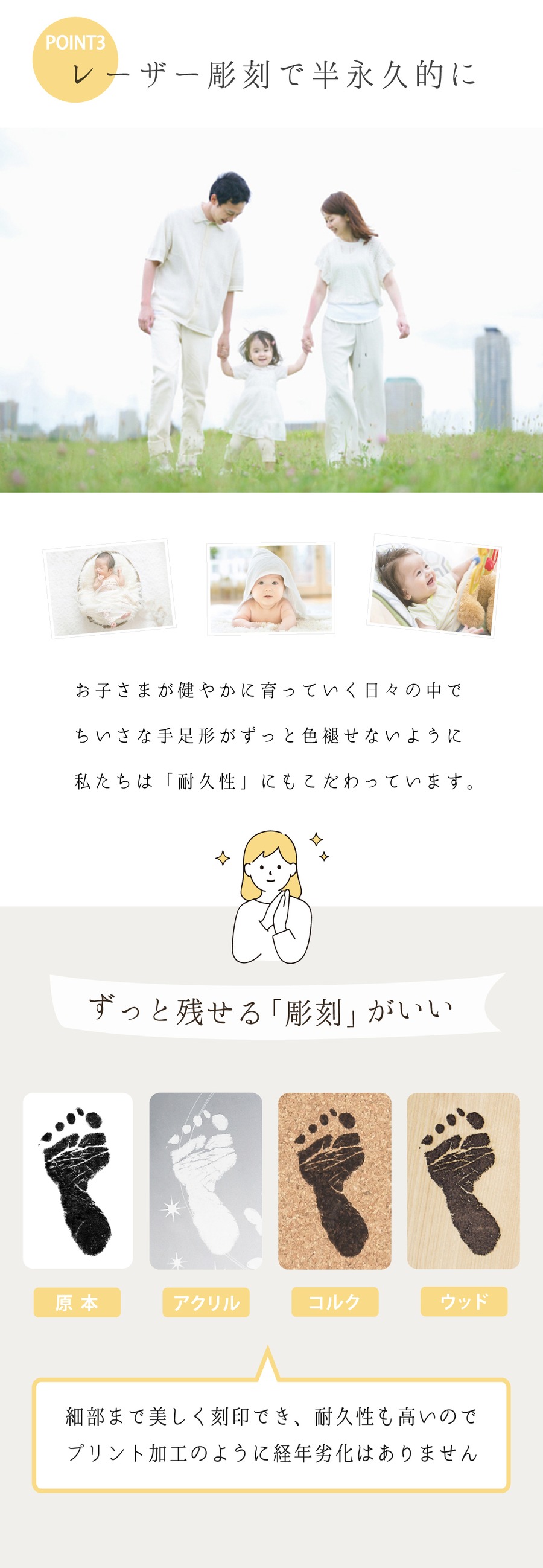 縦:約11cm×横:約11cmの枠に収まる手足形であれば、彫刻することができます。この範囲よりも大きな手足形の場合、デザインが変わる可能性があります。