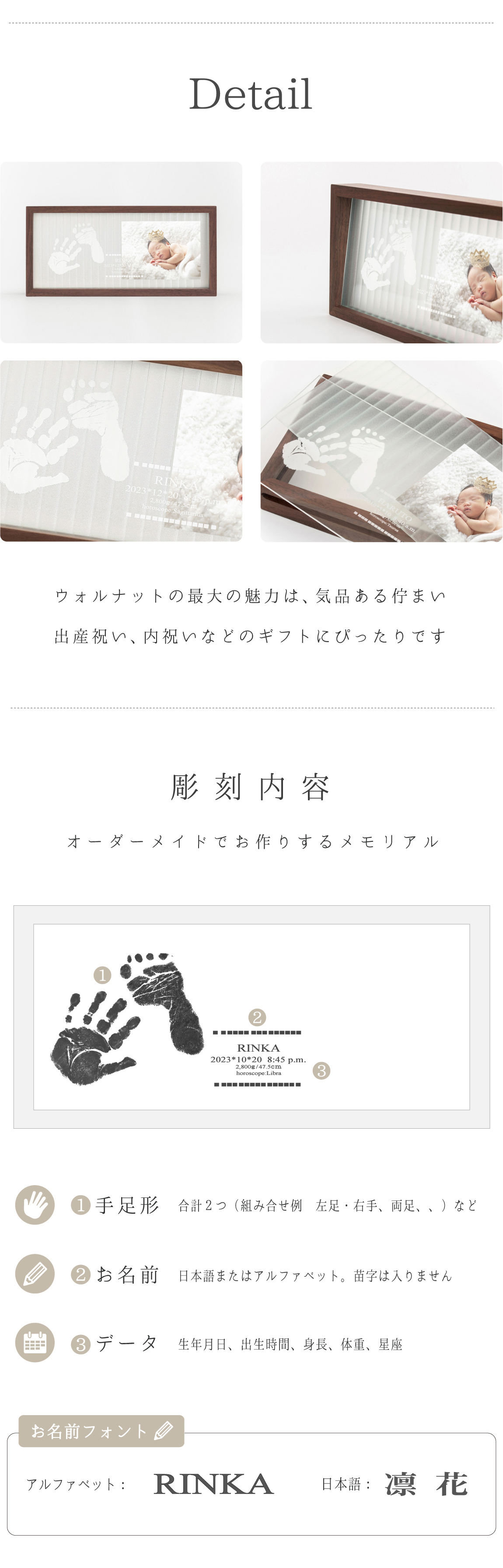 両手足形のうちいずれか2つ/お名前/お誕生日/出生時刻/身長/体重/星座