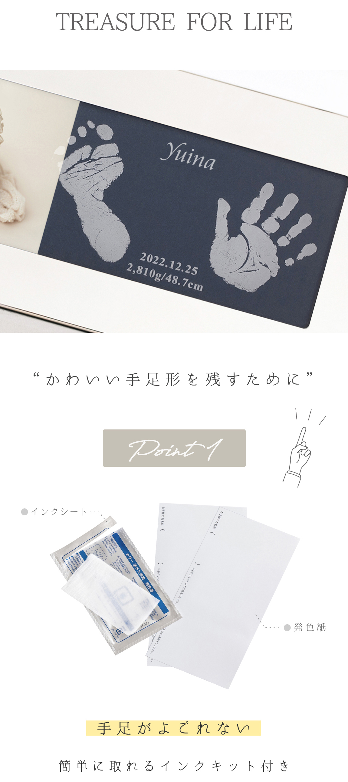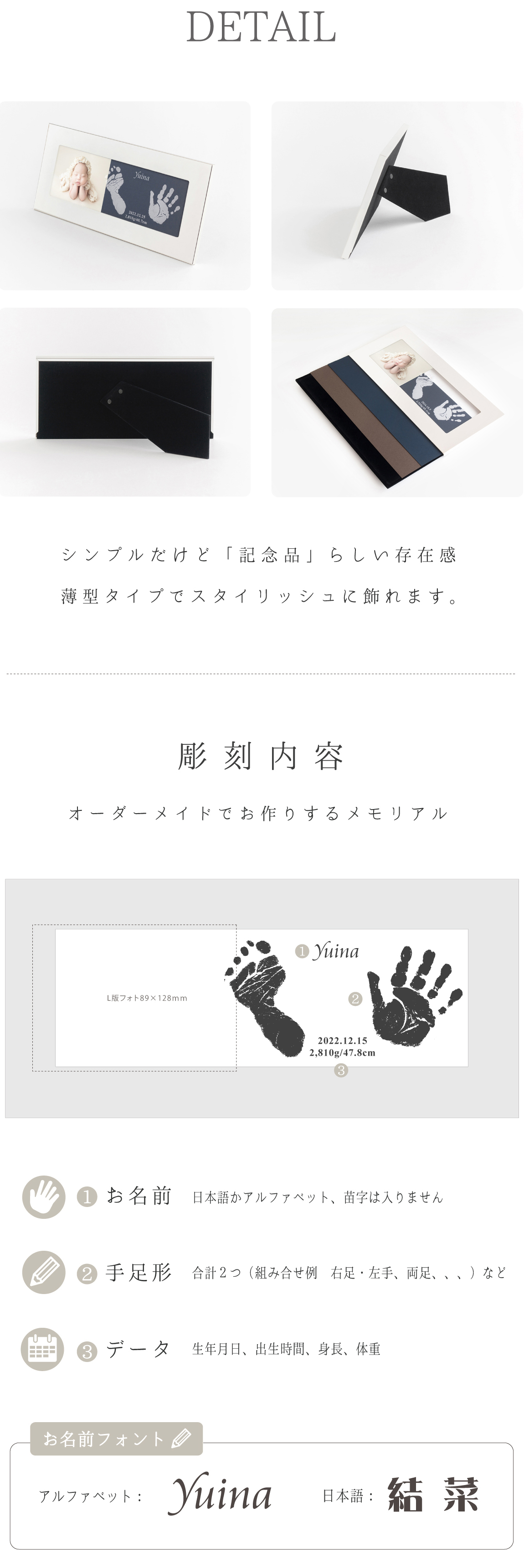 両手足形のうちいずれか2つ/お名前/お誕生日/身長/体重