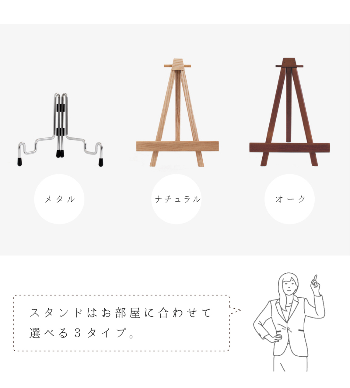メタルスタンドまたは木製イーゼル ※お申込書にてお選びいただけます。