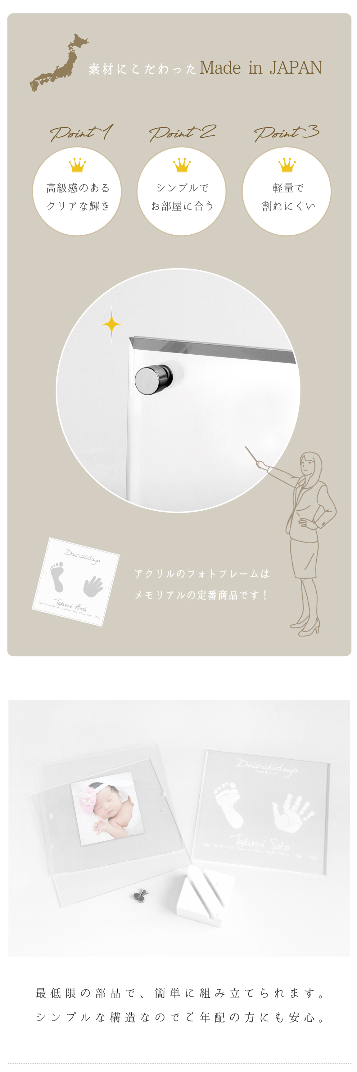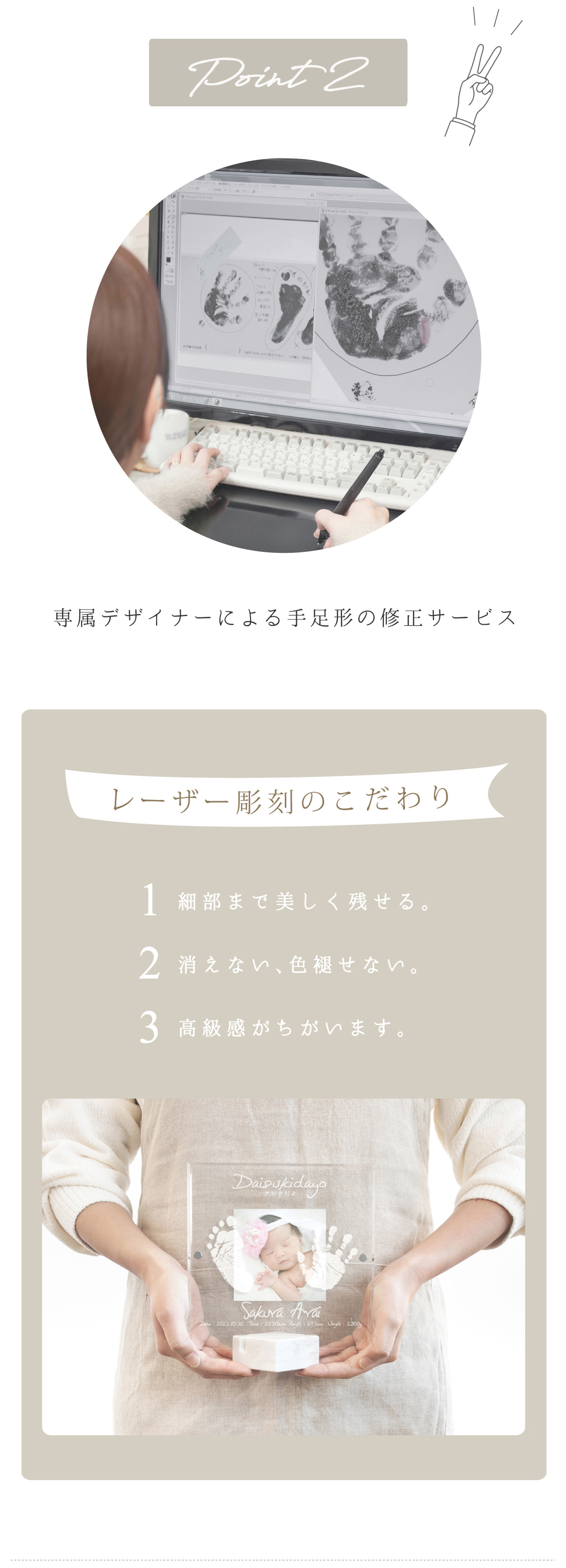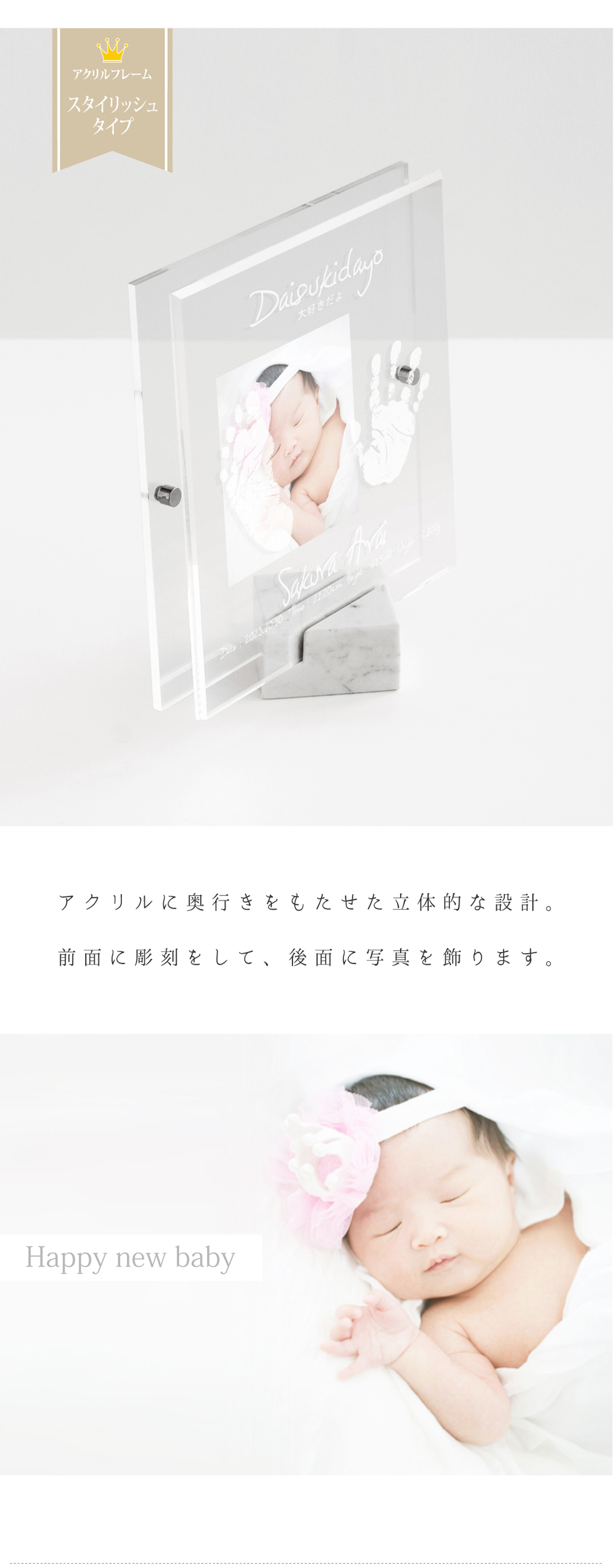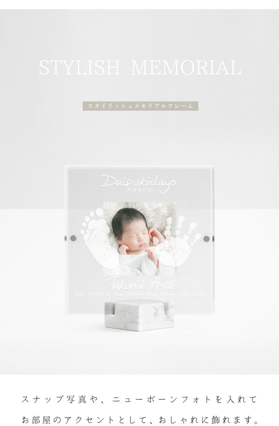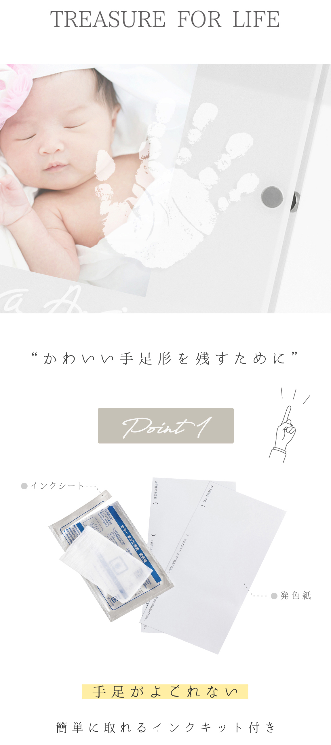 両手足形のうちいずれか2つ/お名前/お誕生日/出生時刻/身長/体重/メッセージ