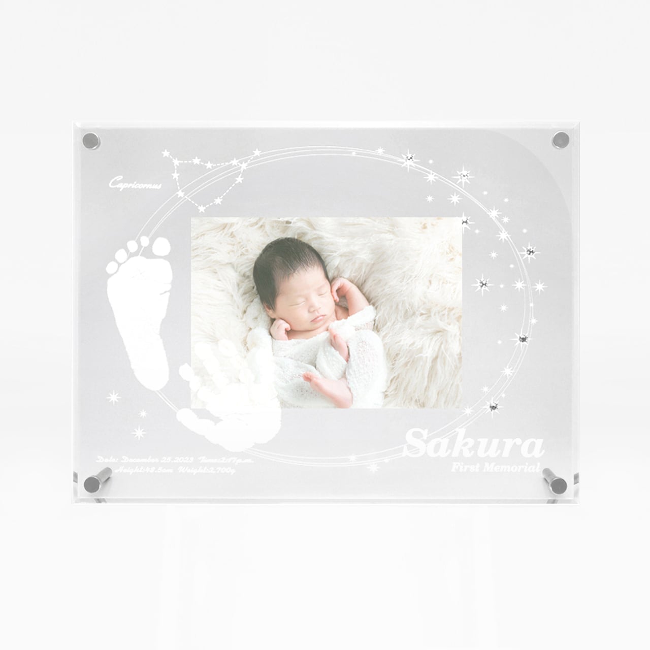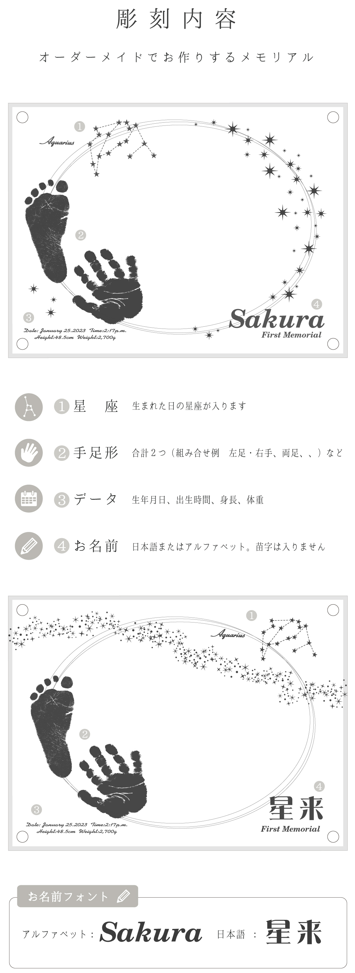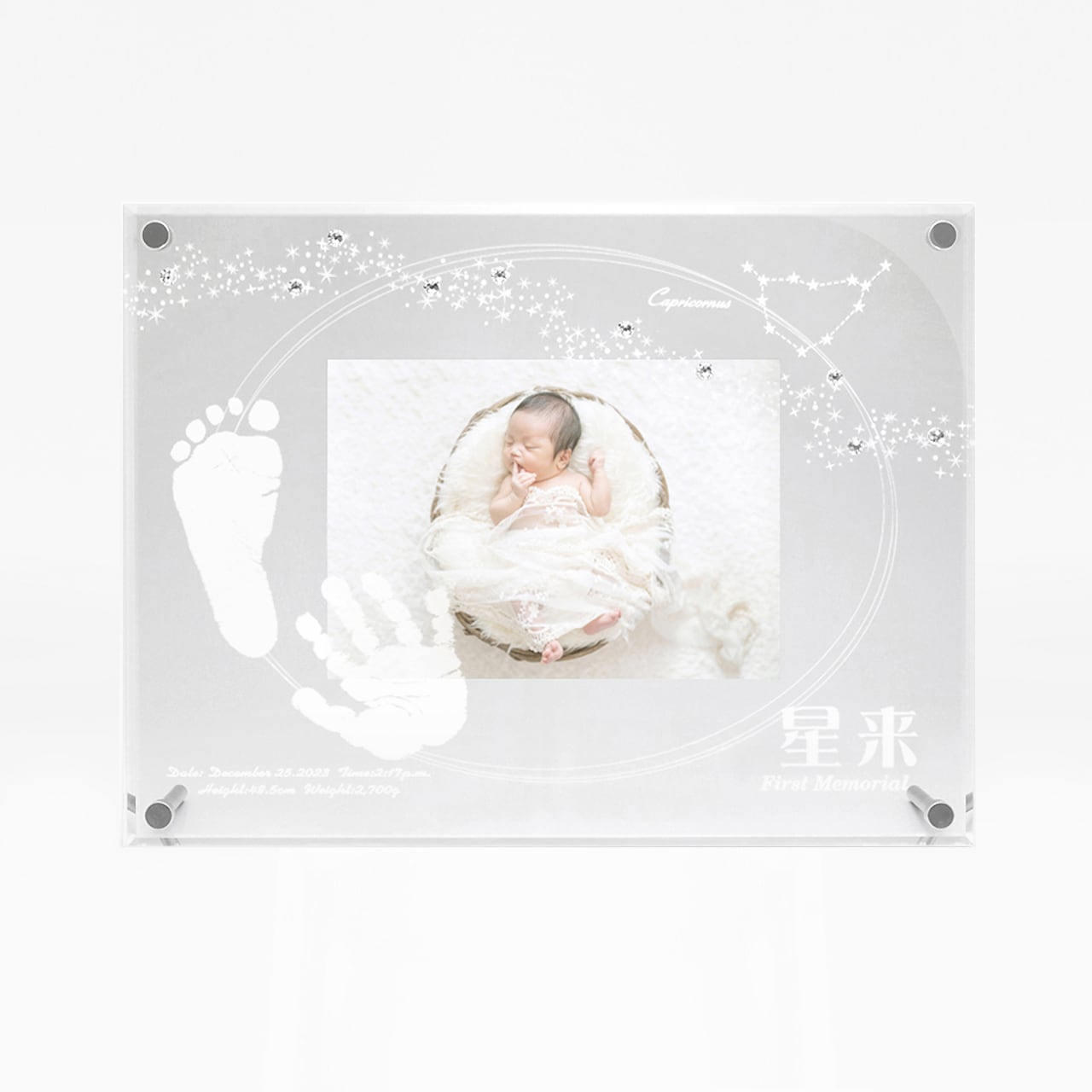 両手足形のうちいずれか2つ/お名前/お誕生日/出生時刻/身長/体重/星座