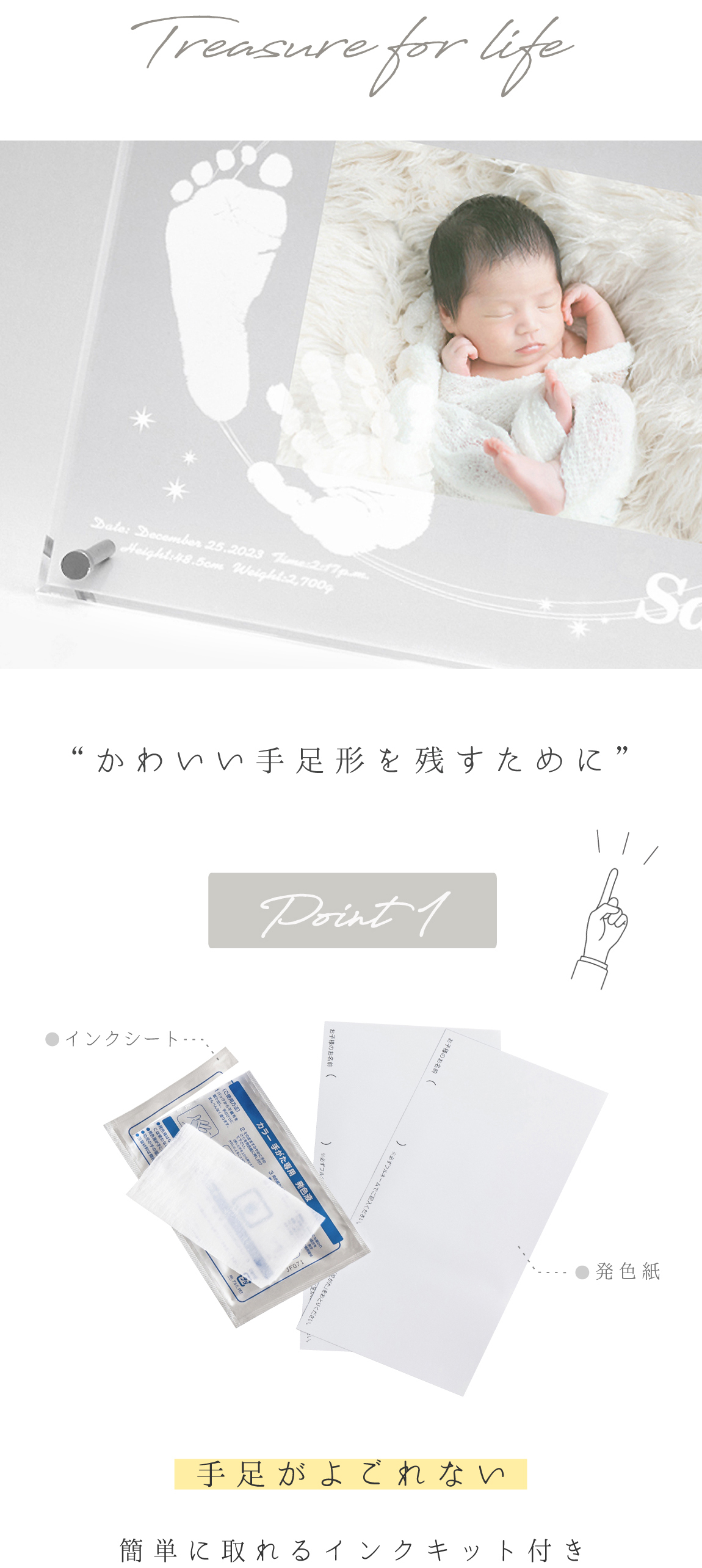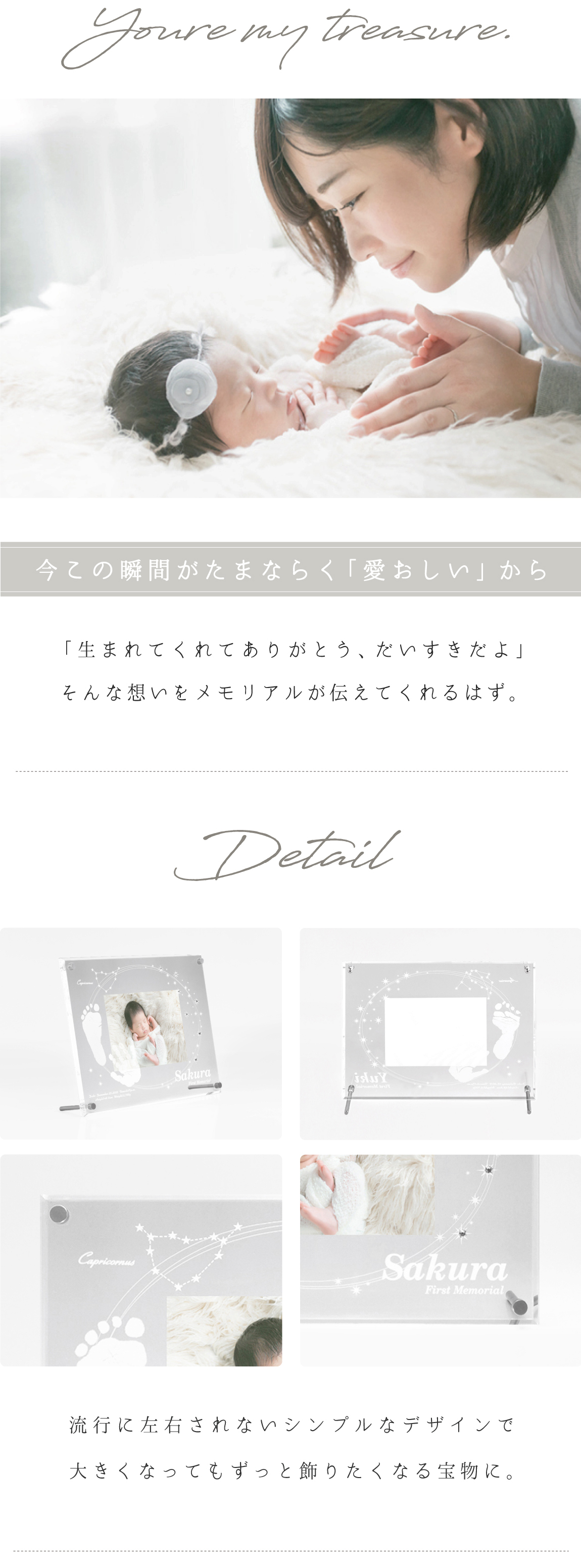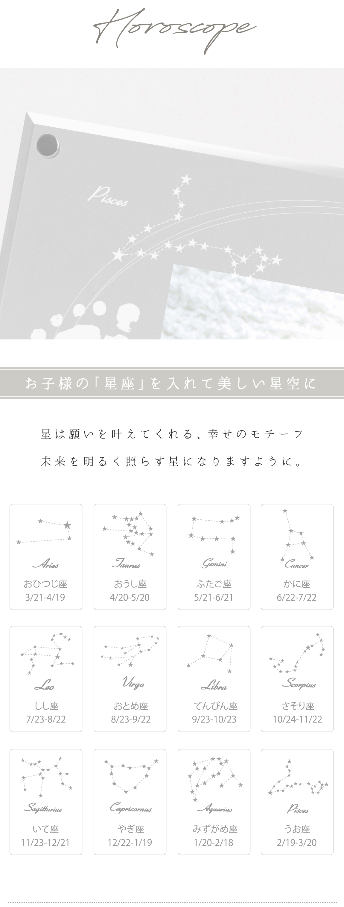 両手足形のうちいずれか2つ/お名前/お誕生日/出生時刻/身長/体重/星座