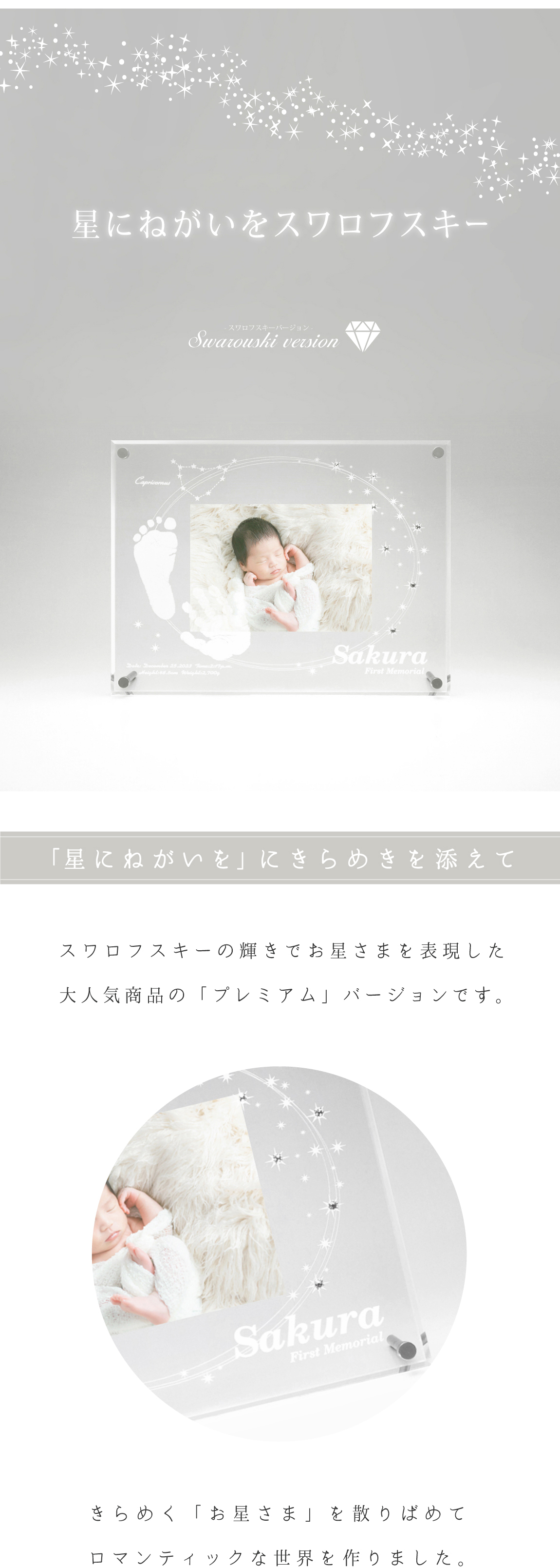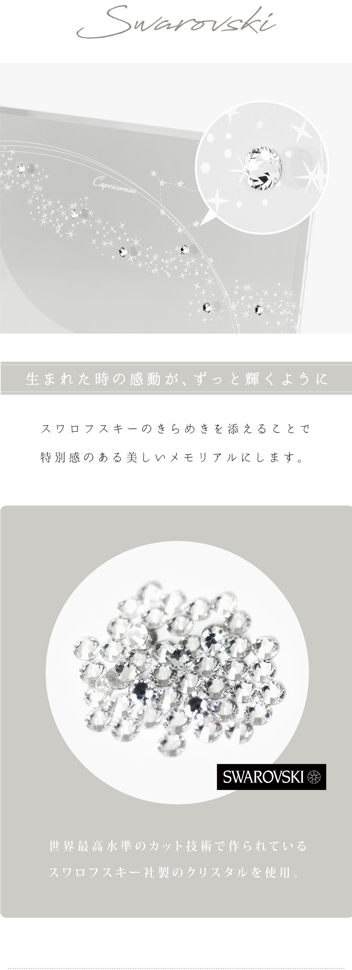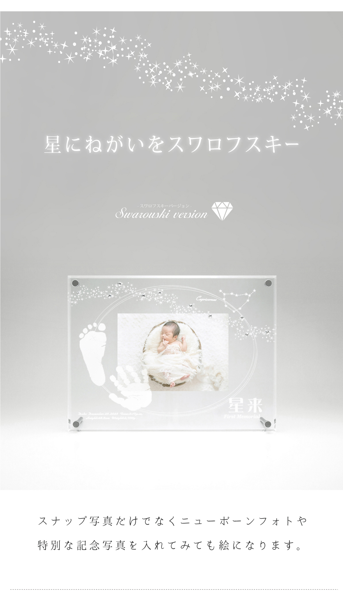 お子さまのすこやかな成長を、お星さまに願うメモリアル。ロマンティックな世界観にスワロフスキーのきらめきをやさしく添えました。記念品らしい華やかさと上質さを両立したデザイン。大切な記憶をそっと輝かせてくれます。