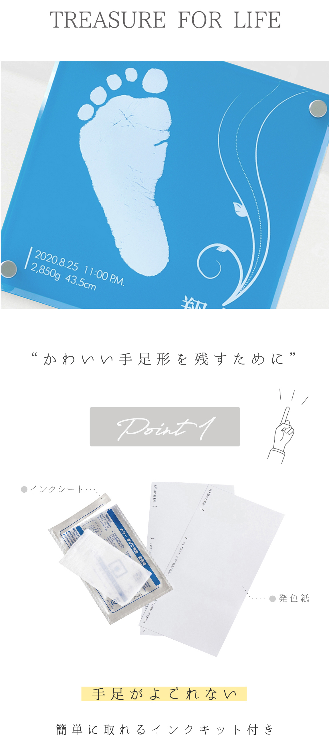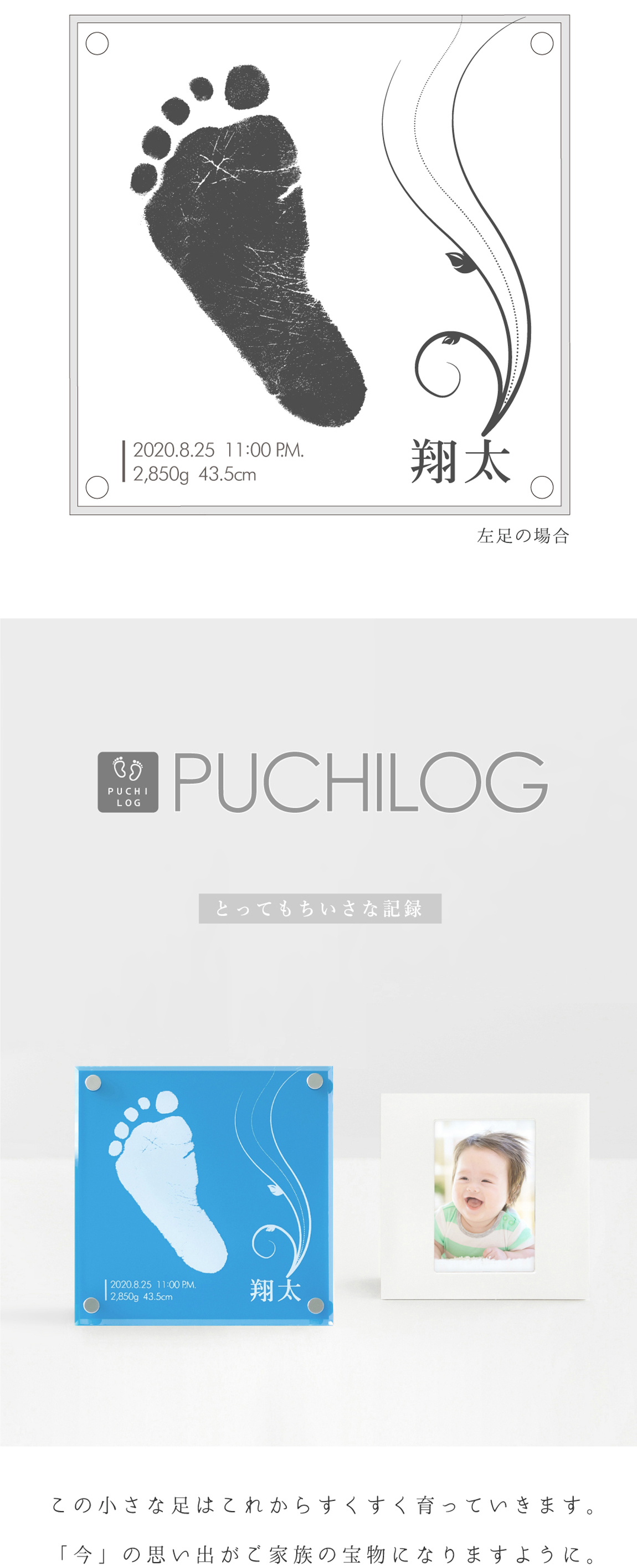 両足形のうちどちらか1つ/お名前/お誕生日/出生時間/身長/体重