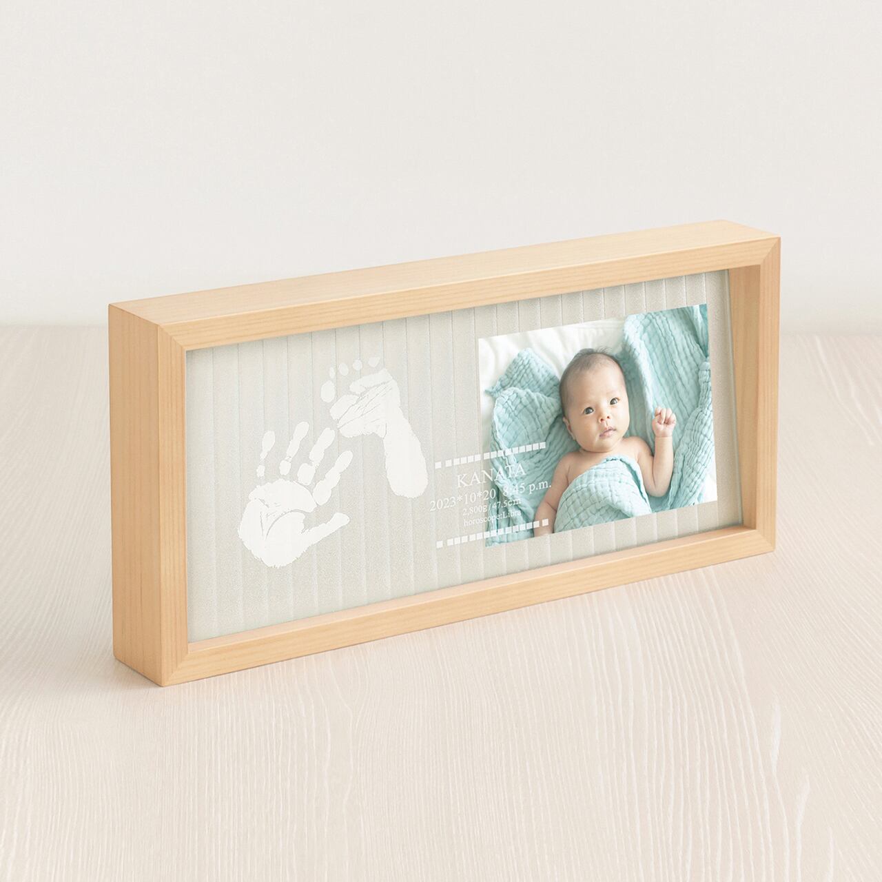 星にねがいをカラー:(幅)240mm×(高さ)180mm×(厚さ)7mm(スタンド含まず)、天使の記憶:(幅)310mm×(高さ)145mm×(厚さ)40mm、はじめましてメモリアルフレーム:(幅)310mm×(高さ)145mm×(厚さ)15mm、コルクウッドスタンド:(幅)484mm×(高さ)184mm×(厚さ)20mm
