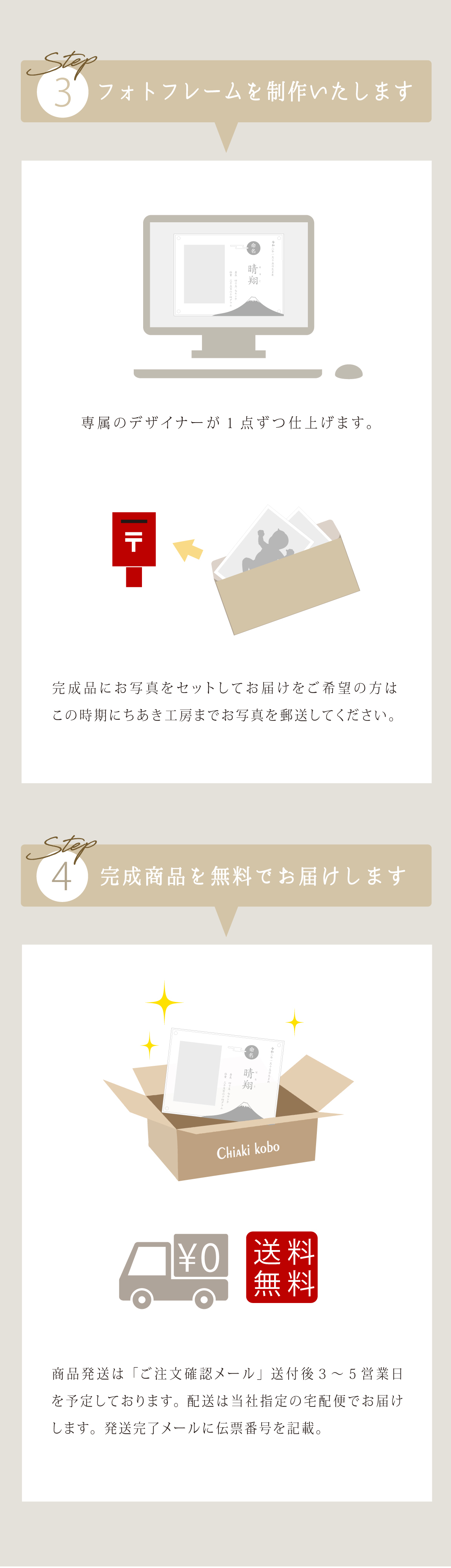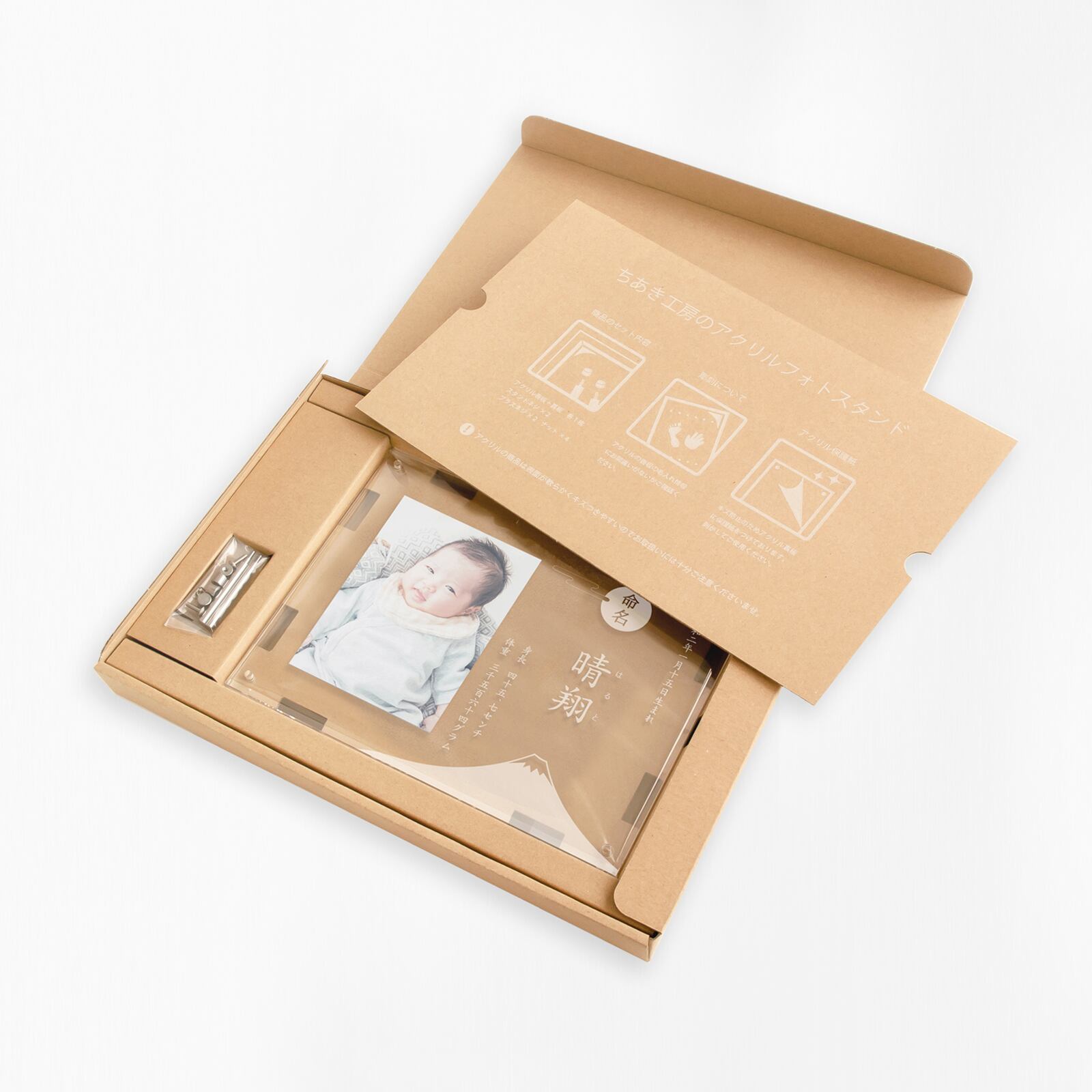 写真サイズ:L判(縦型)(127×89mm) お写真は、完成メモリアルがお手元に届き次第、ご自宅にて飾っていただけます。