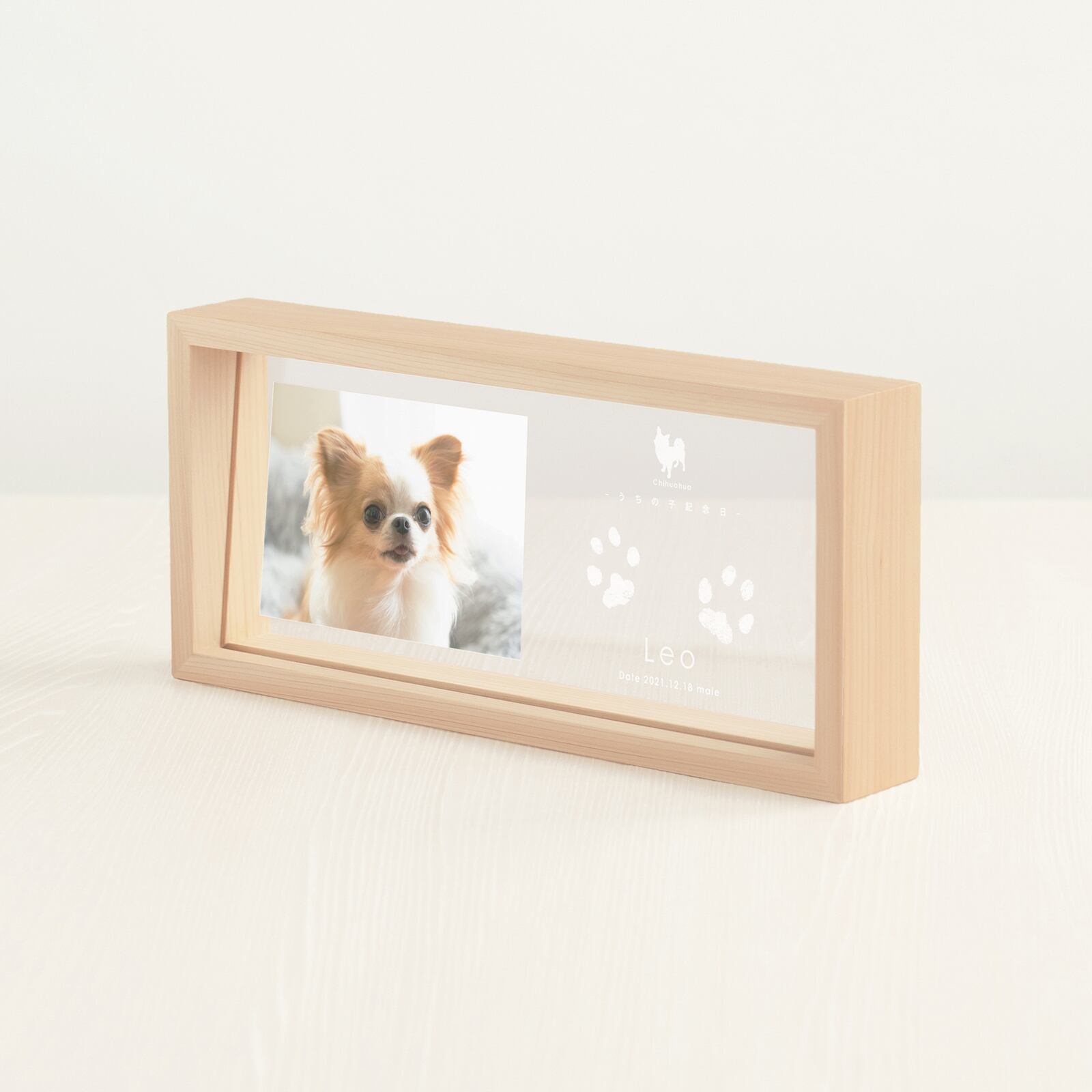 愛犬・愛猫のメモリアル。国産ヒノキで仕立てたフレームは、当店だけのオリジナルです。北欧家具のようなシンプルなデザインはお部屋にやさしくなじみます。天然木の風合いと、時を重ねるごとに深まる色合いもぜひお楽しみください。