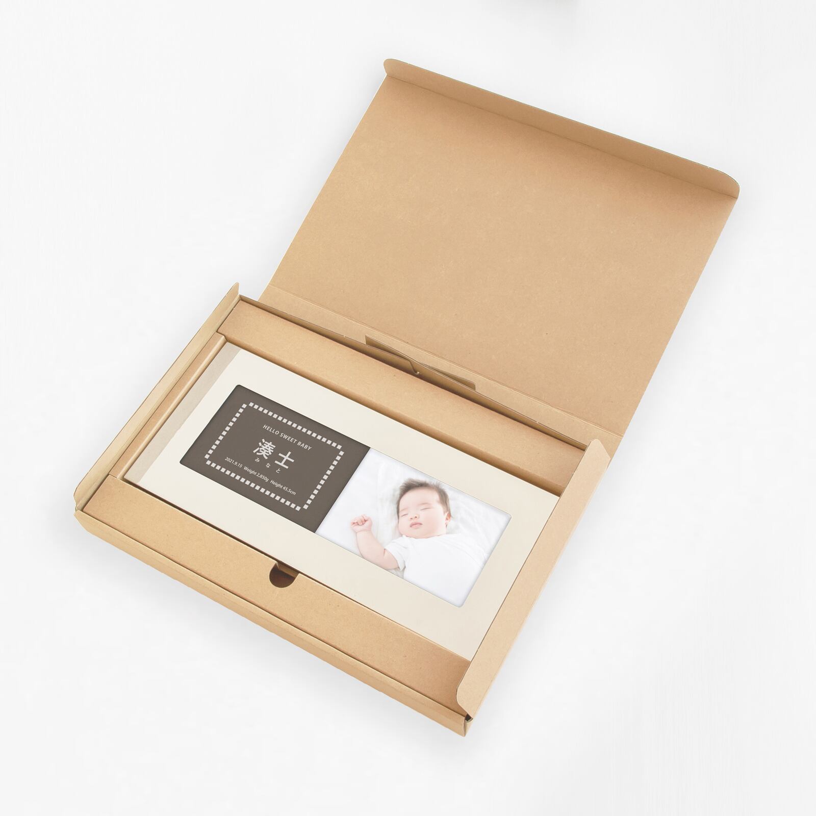 シンプルでありながら高級感溢れるシルバーフレームは、大切な記念やお祝いを彩るのに最適です。お子さまのお名前入りという特別なフレームは、ギフトとしても大変人気です。データを入力するだけで簡単にオーダーできます。