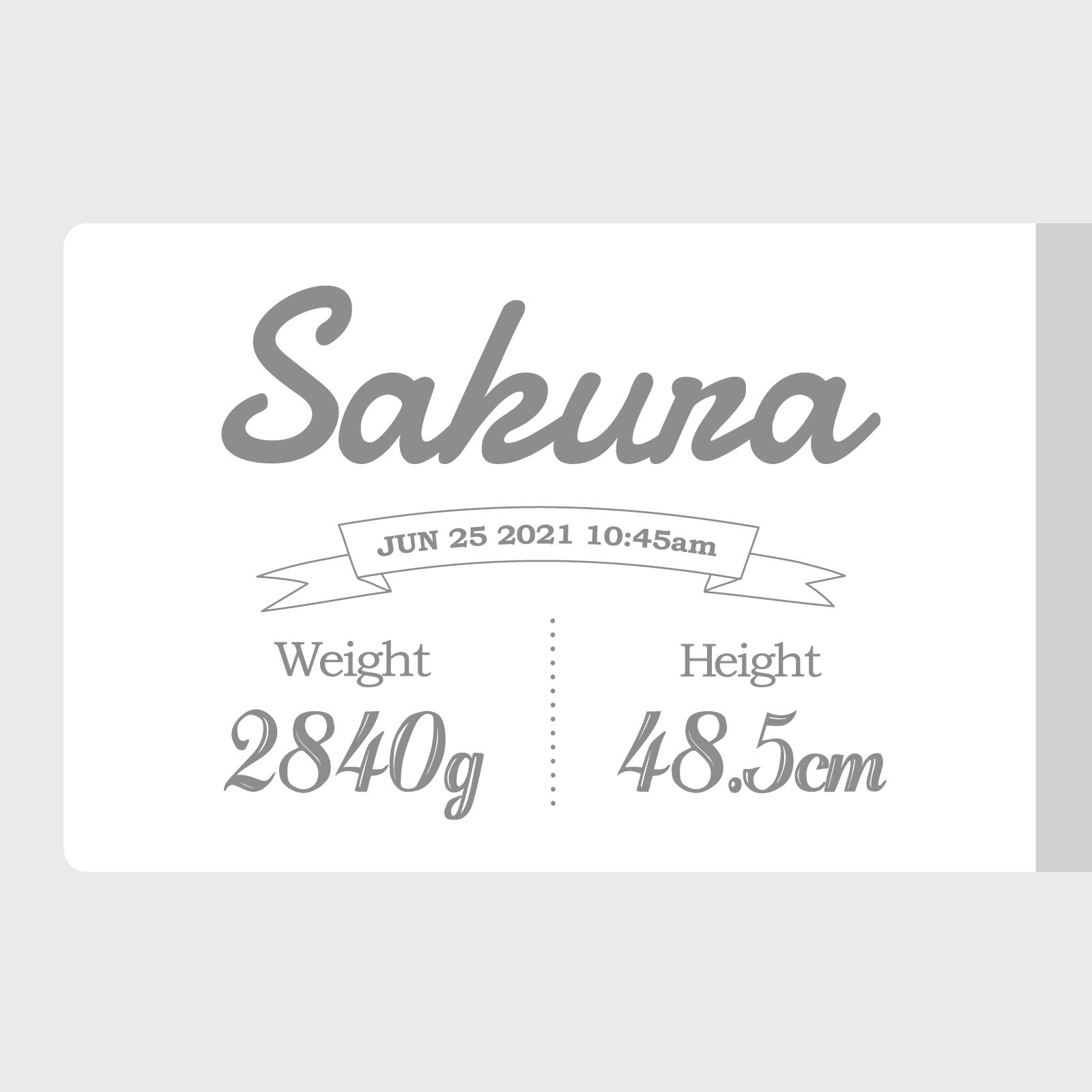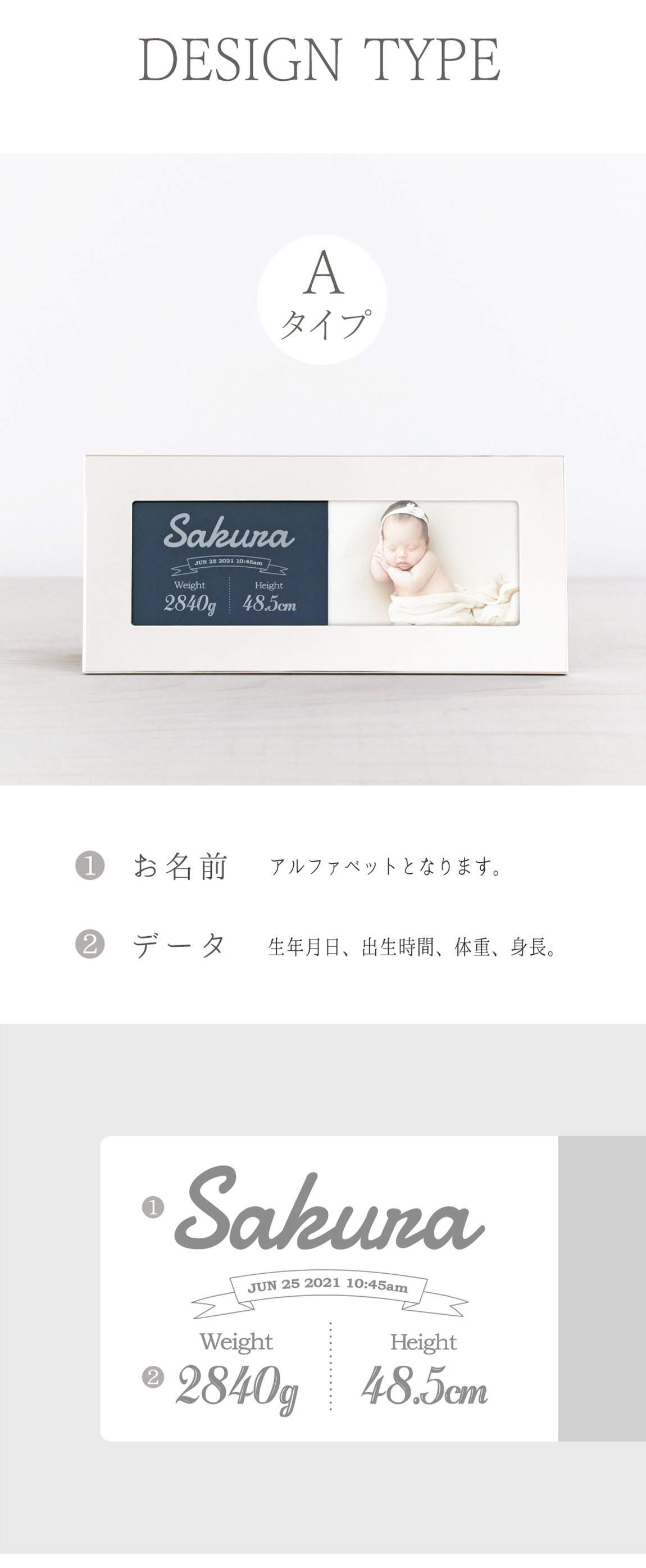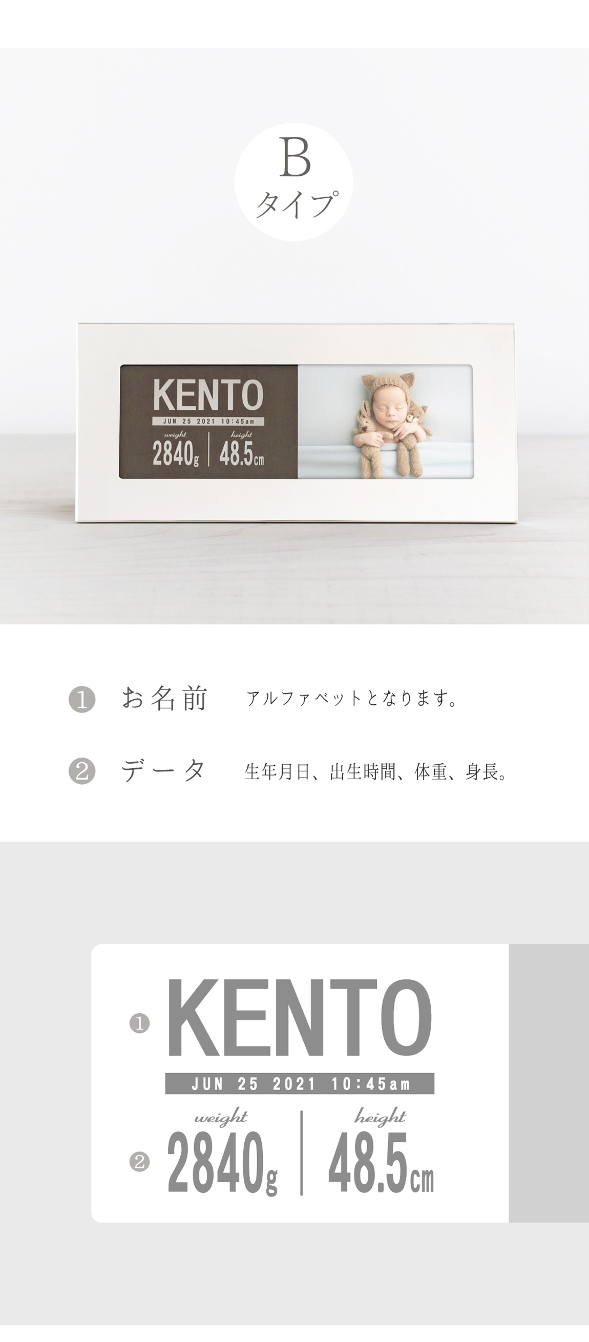 お名前 アルファベットのみ (大文字、小文字は記入に関係なくサンプル写真どうりとなります)/生年月日/出生時間/出生時の体重/出生時の身長