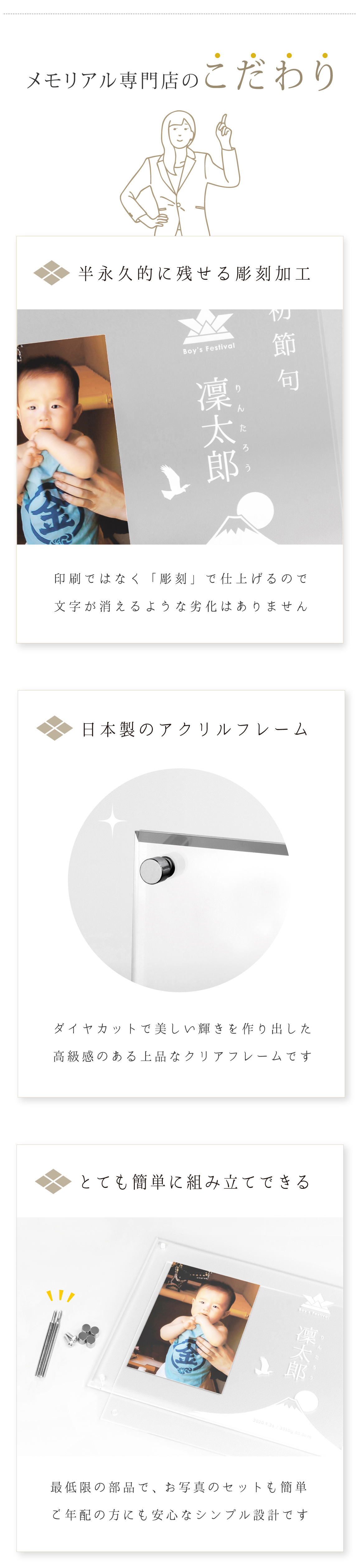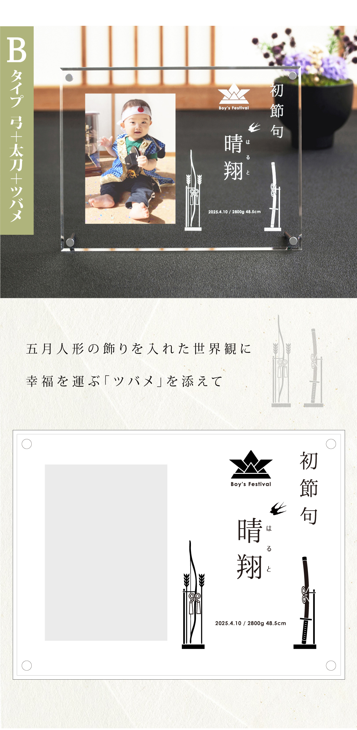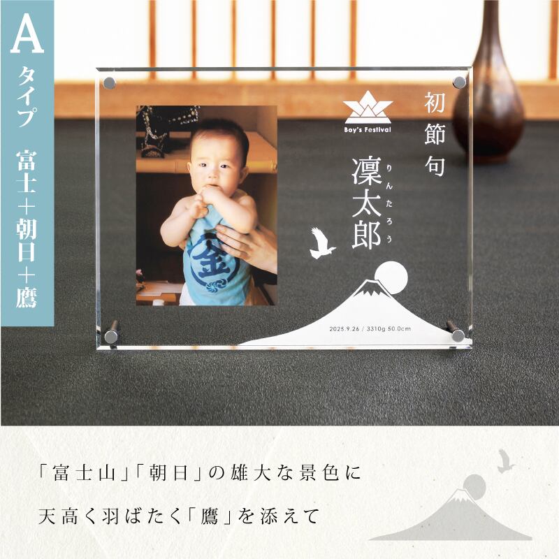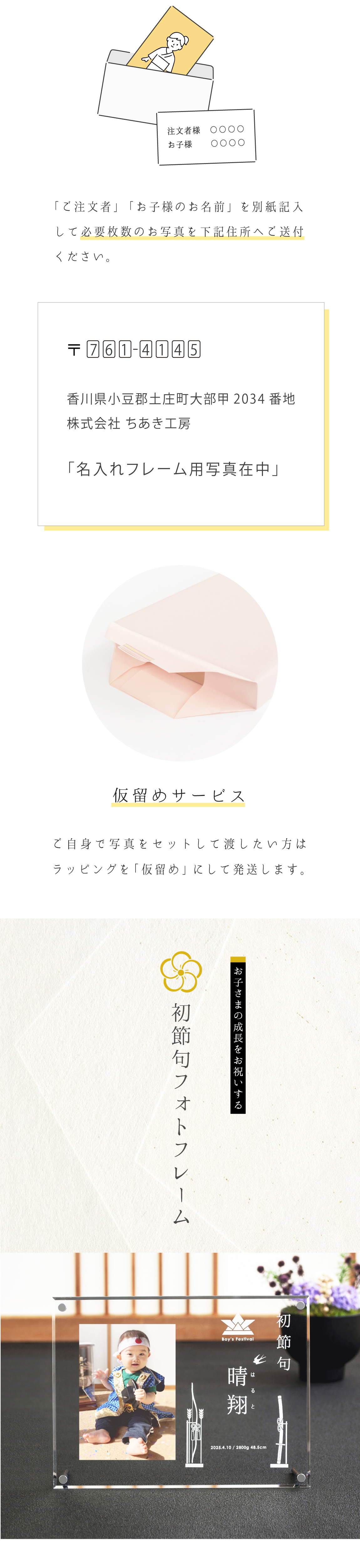 初節句は「一生に一度だけでのイベント」です。お子さまの成長と幸せを願って、かわいい晴れ姿を飾れるフォトフレームをつくりました。祝福してくれたご家族へのギフトとして大変喜ばれています。