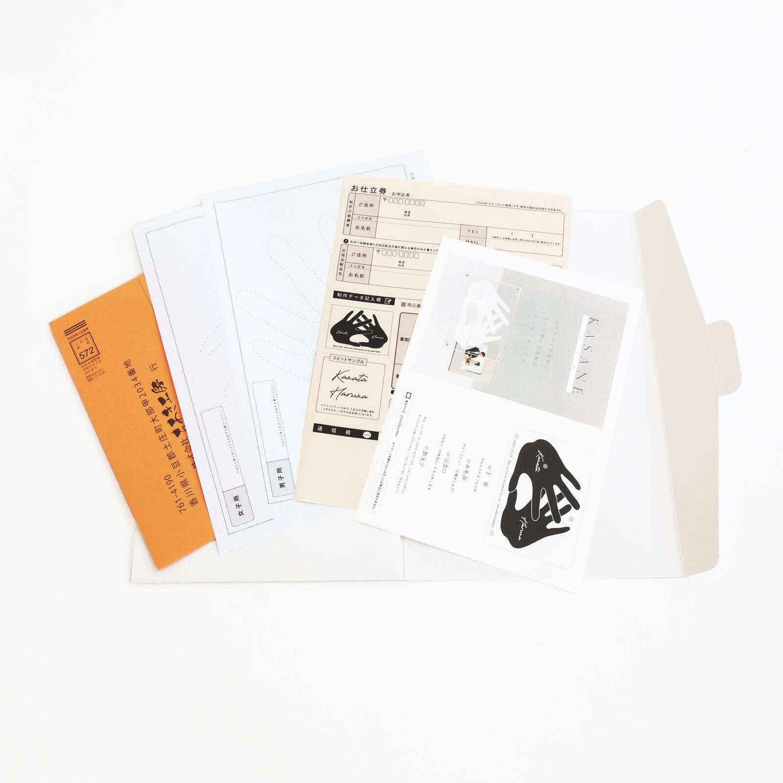 お申込用紙/返信用後納封筒/カタログ/おふたりの手形をとる用紙×2枚